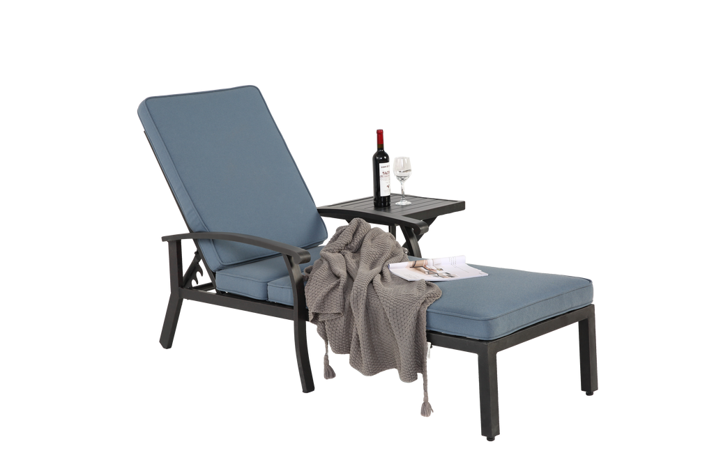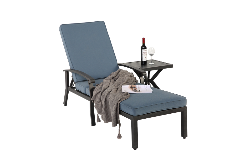 Lounge Patio Chair, Adjustable Reclining Rustproof Aluminum Poolside Chaise, Blue