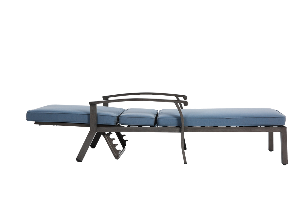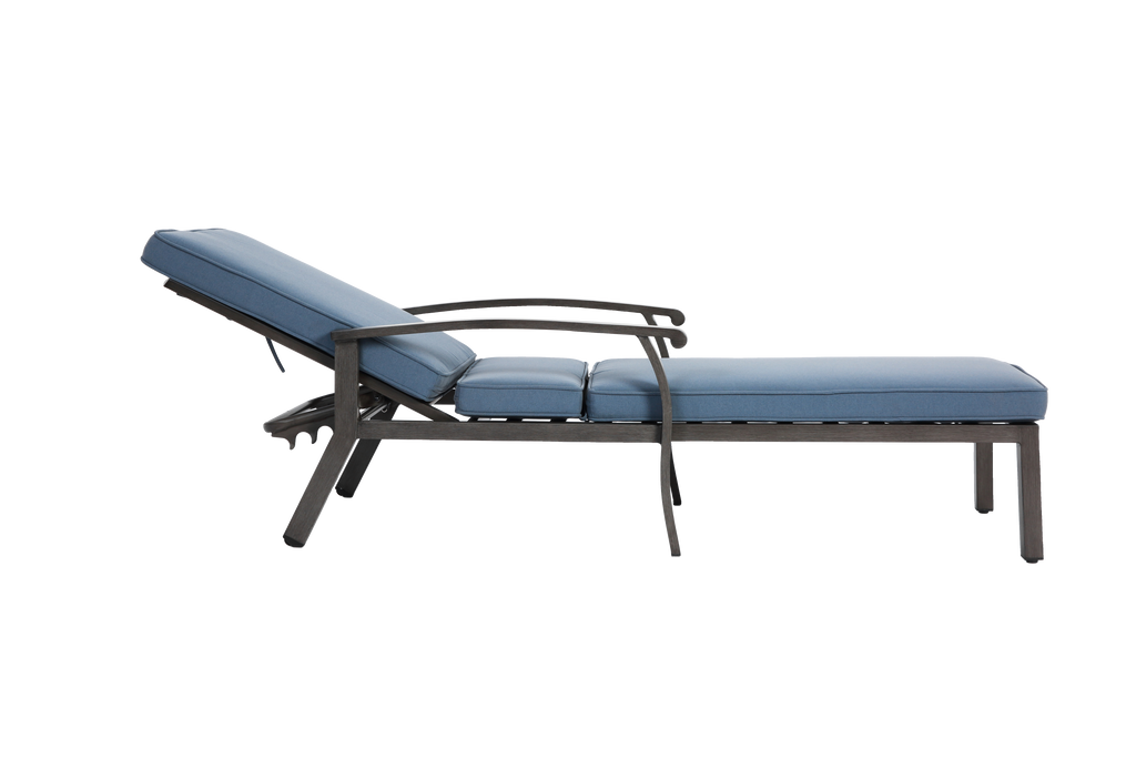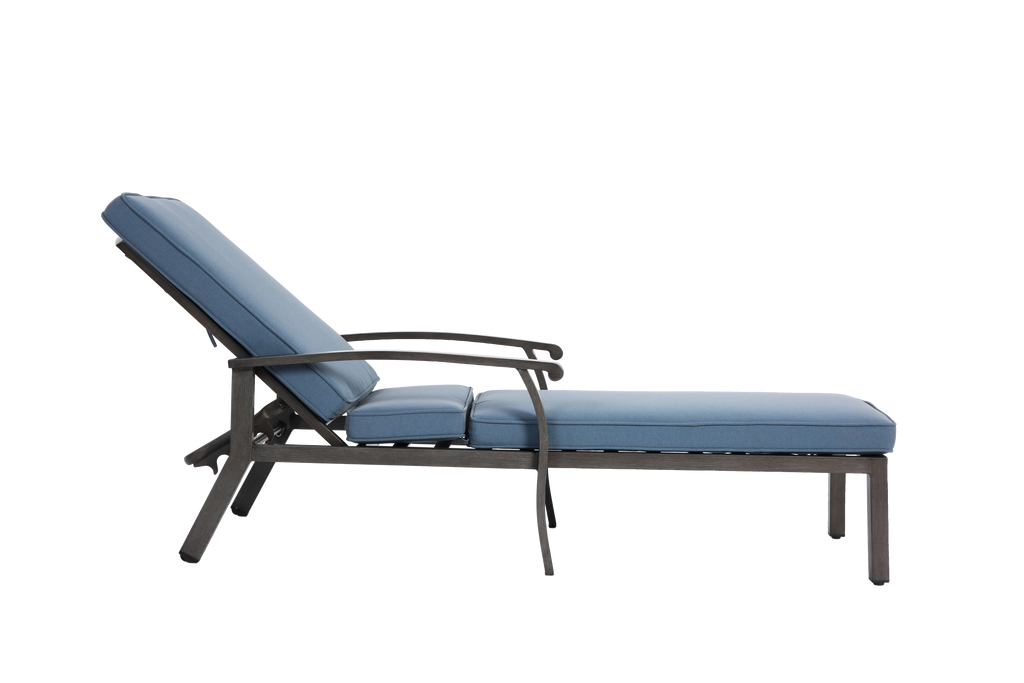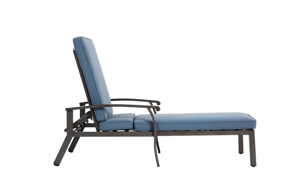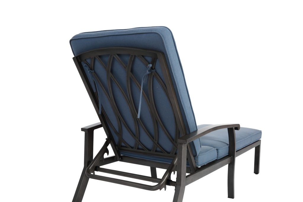 Lounge Patio Chair, Adjustable Reclining Rustproof Aluminum, Waterproof Blue Cushion