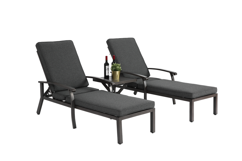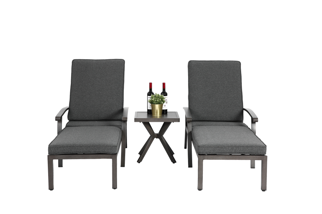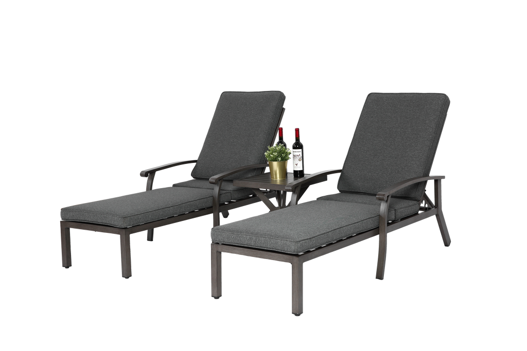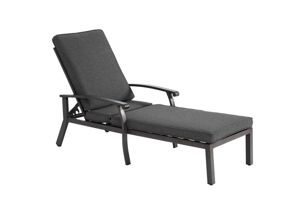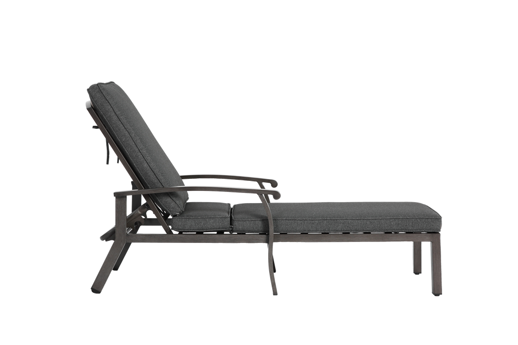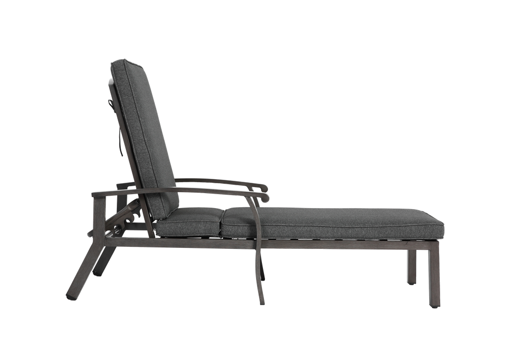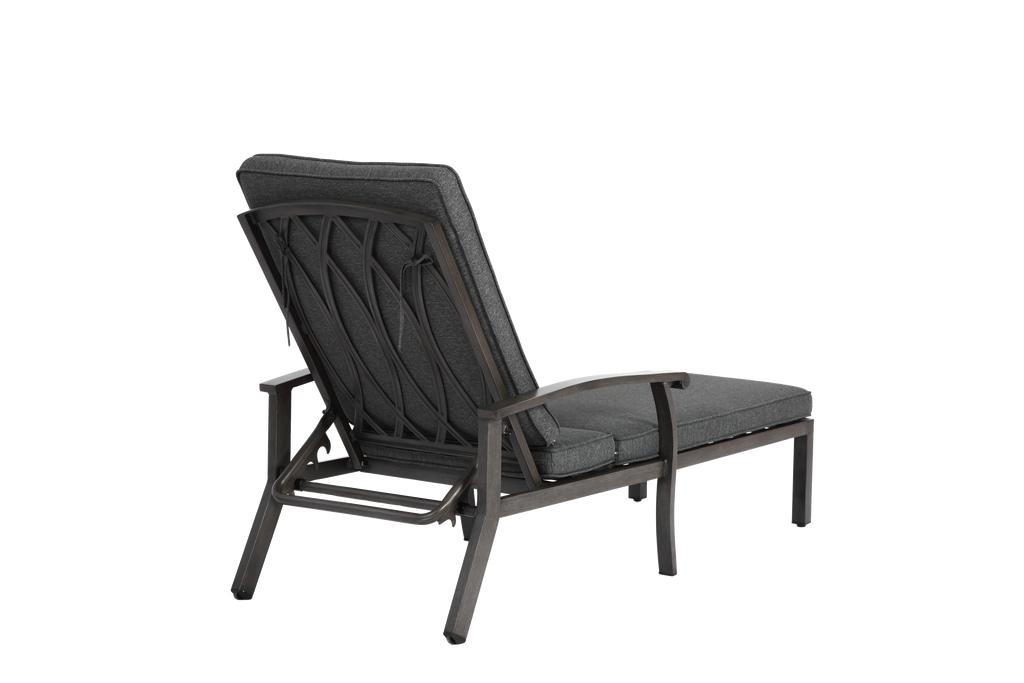 Lounge Patio Chair, Adjustable Reclining with Gray Cotton Cushion