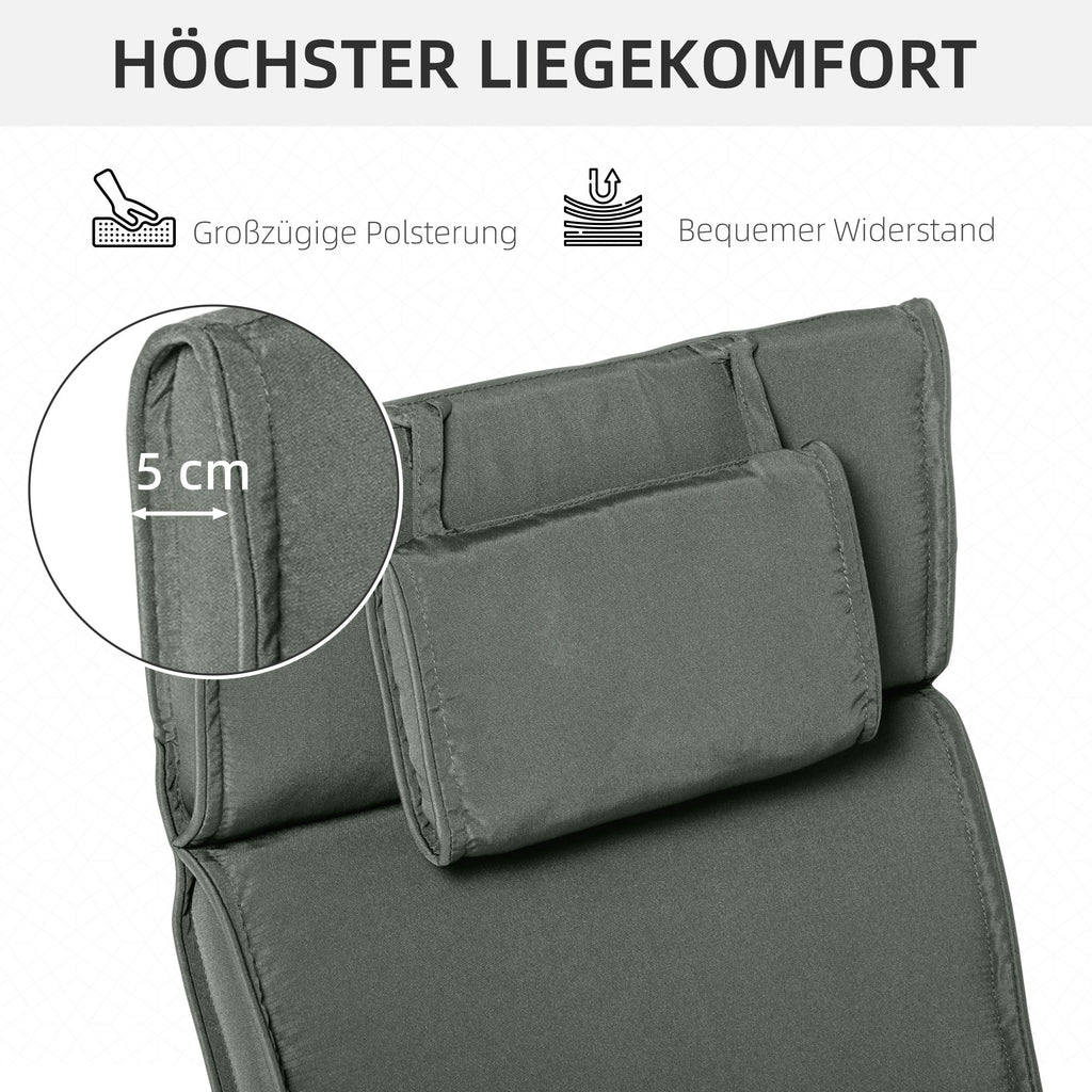 Lounger Cushion, Garden, Removable Headrest, Polyester Cotton Fibre, Grey