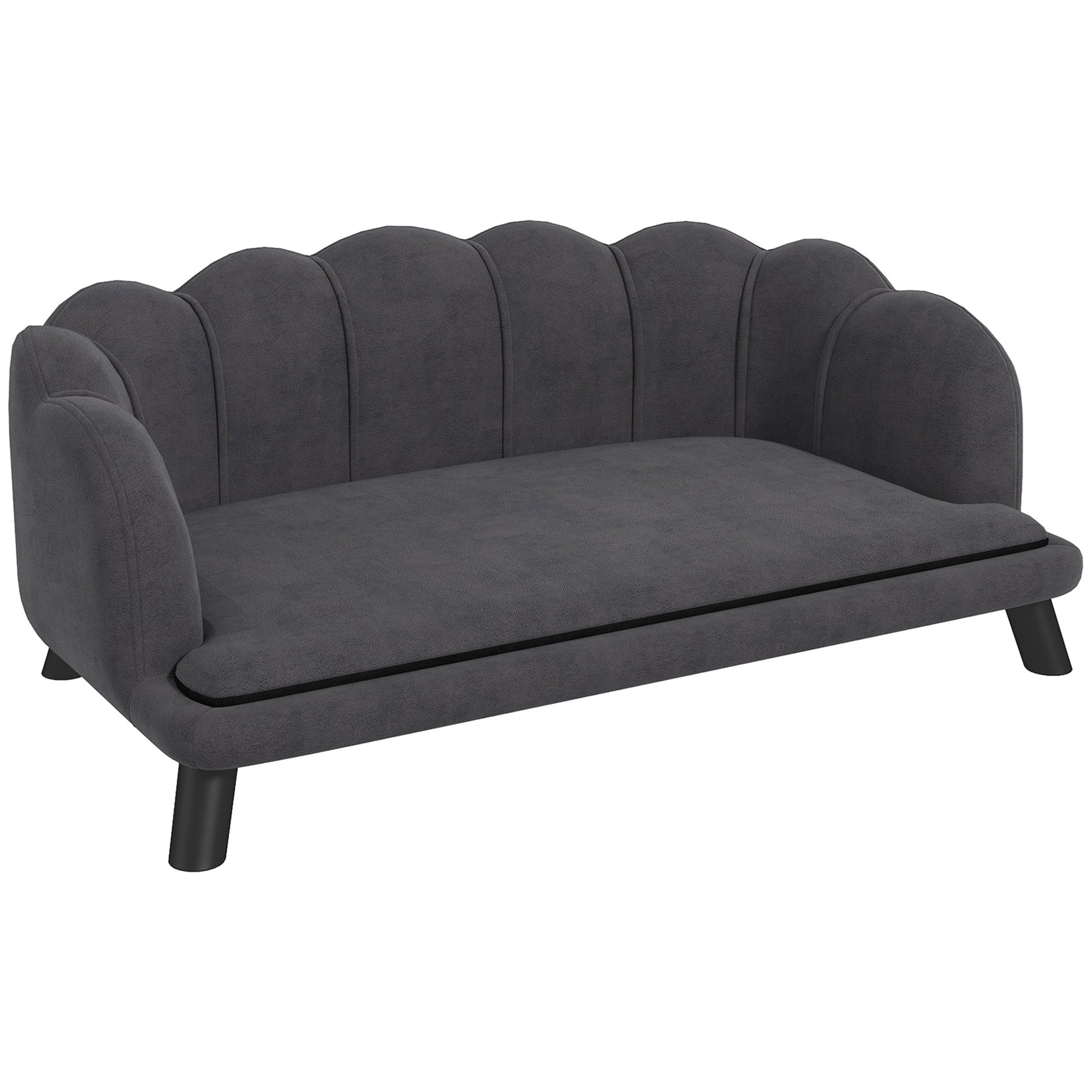 Luxury Dog Sofa, Backrest, Wooden Legs, Dark Grey