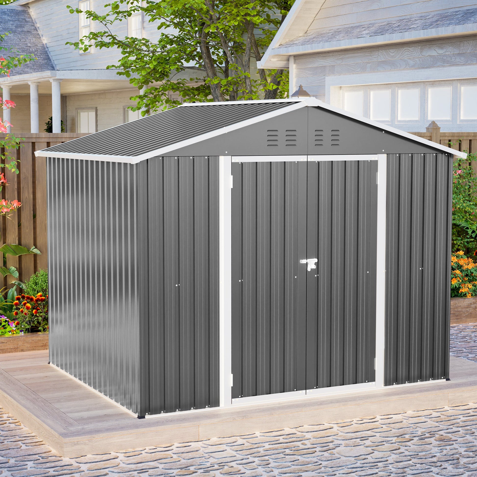 Metal Garden Shed, 8x6 FT with Hinged Door for Tools and Equipment, Anthracite