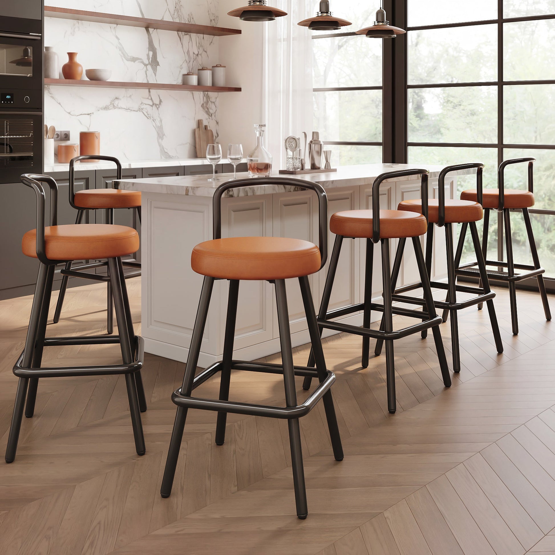 Modern Bar Stool Set of 6 with Ergonomic Backrest and Footrest, Brown PU Leather