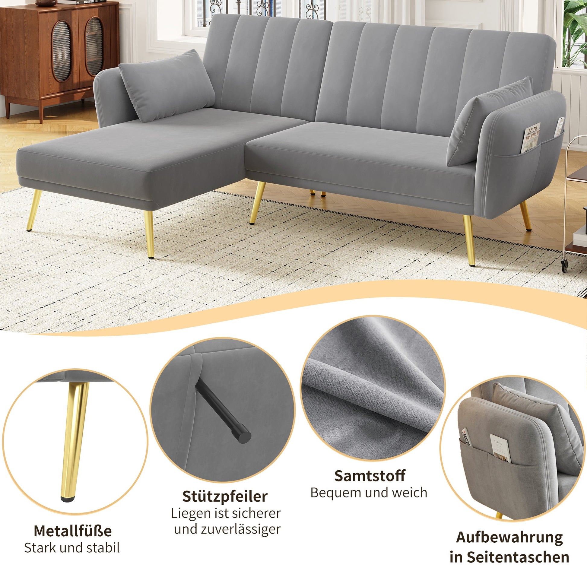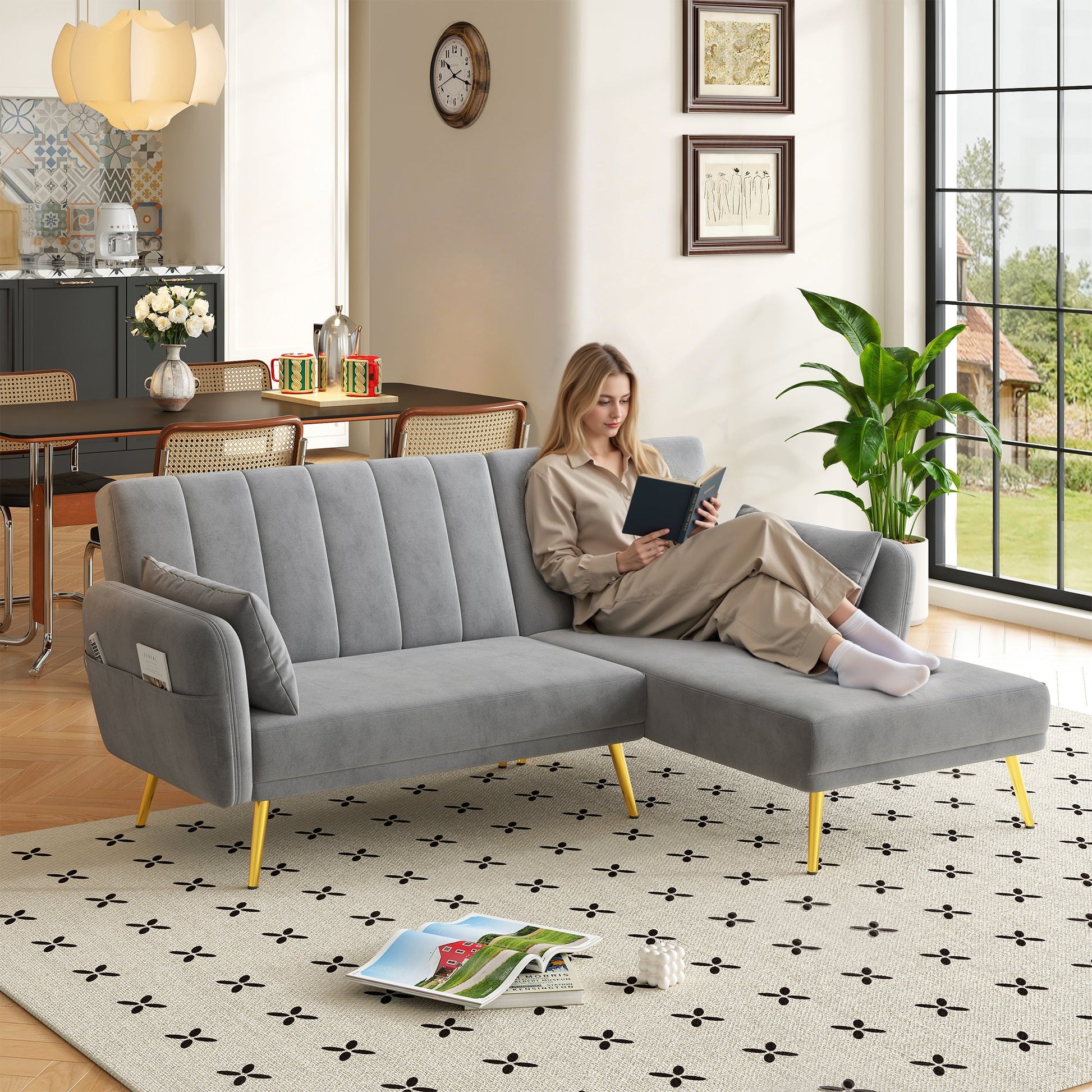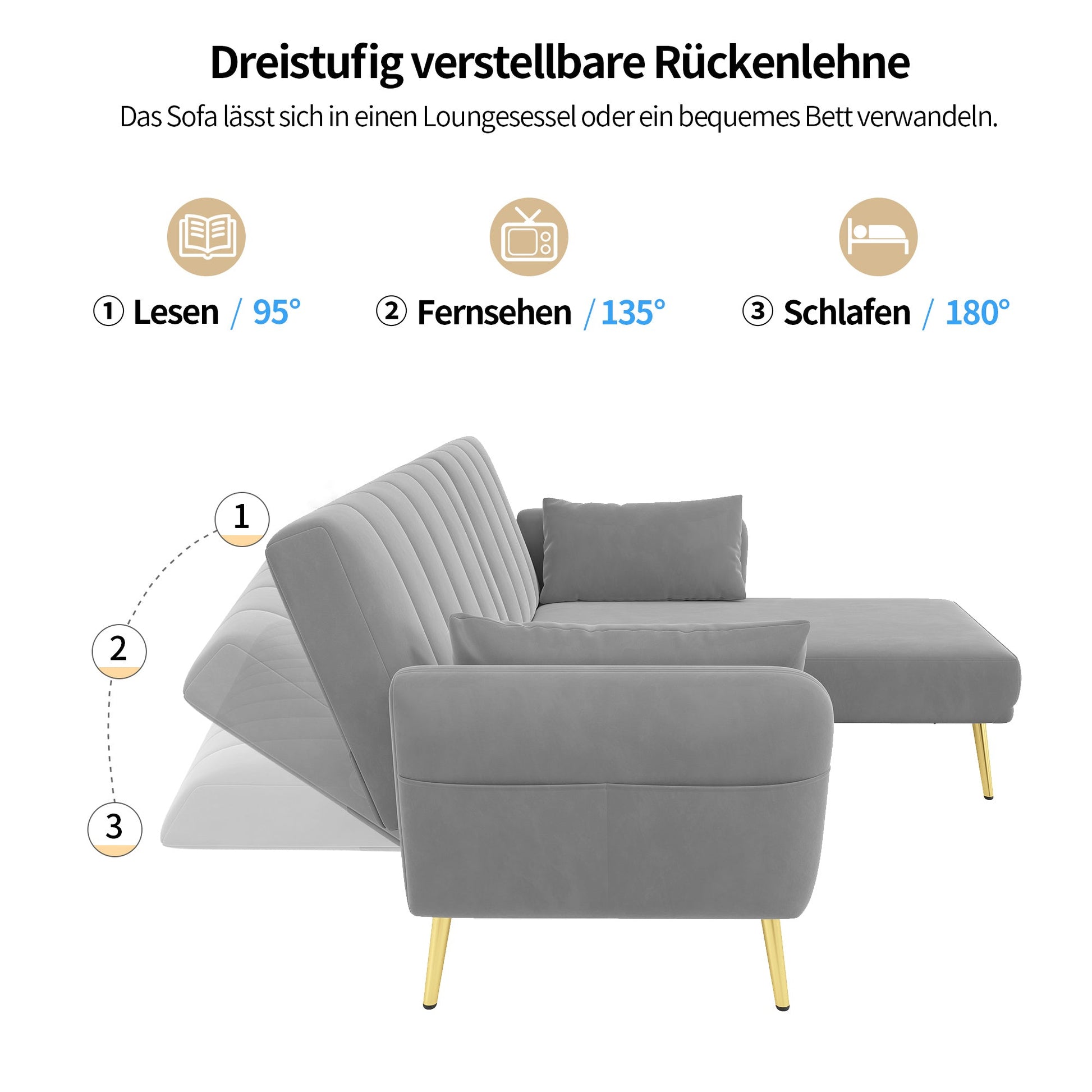 Modern L-Shaped Fold-Out Sleeper Sofa with 3-Position Adjustable Backrest, Velvet