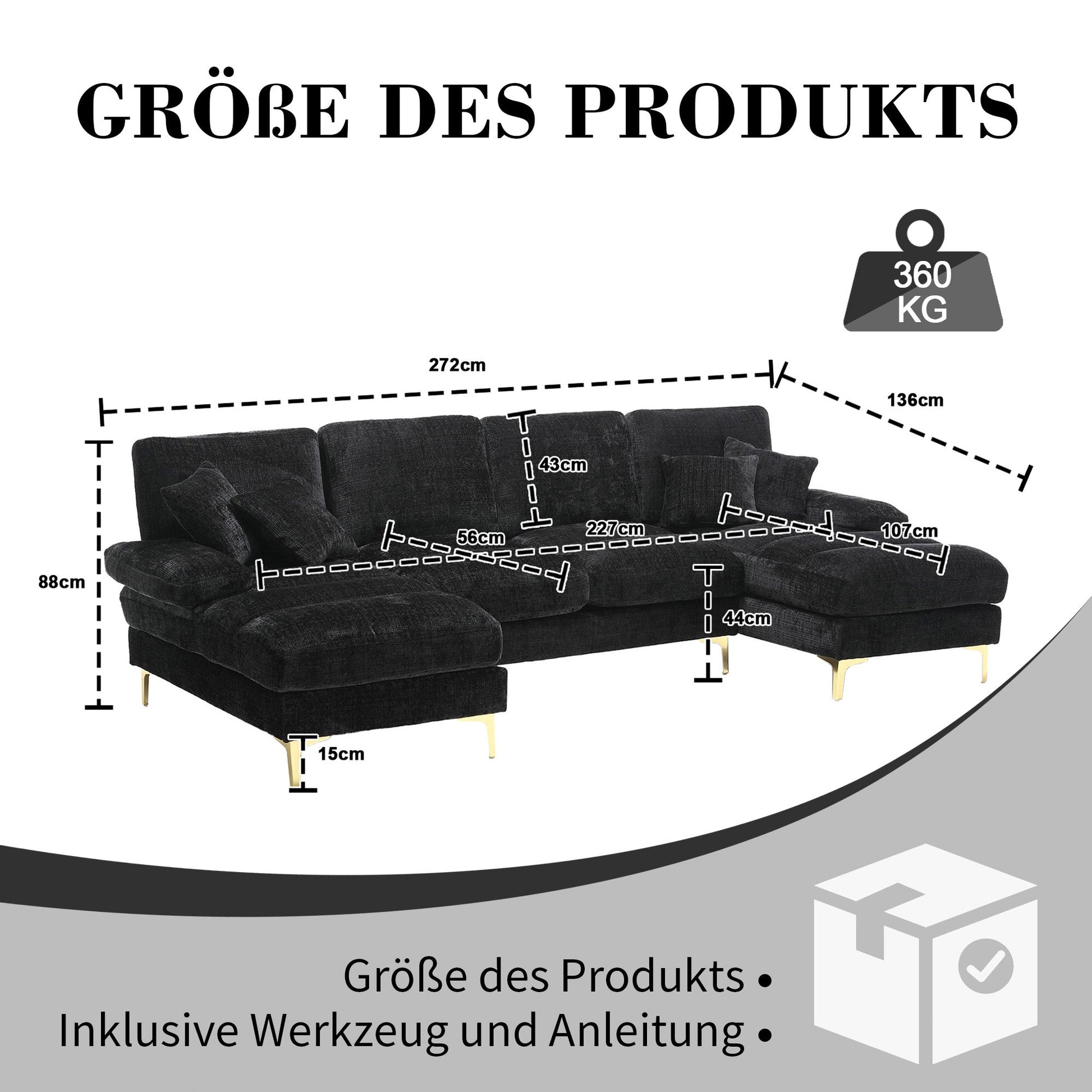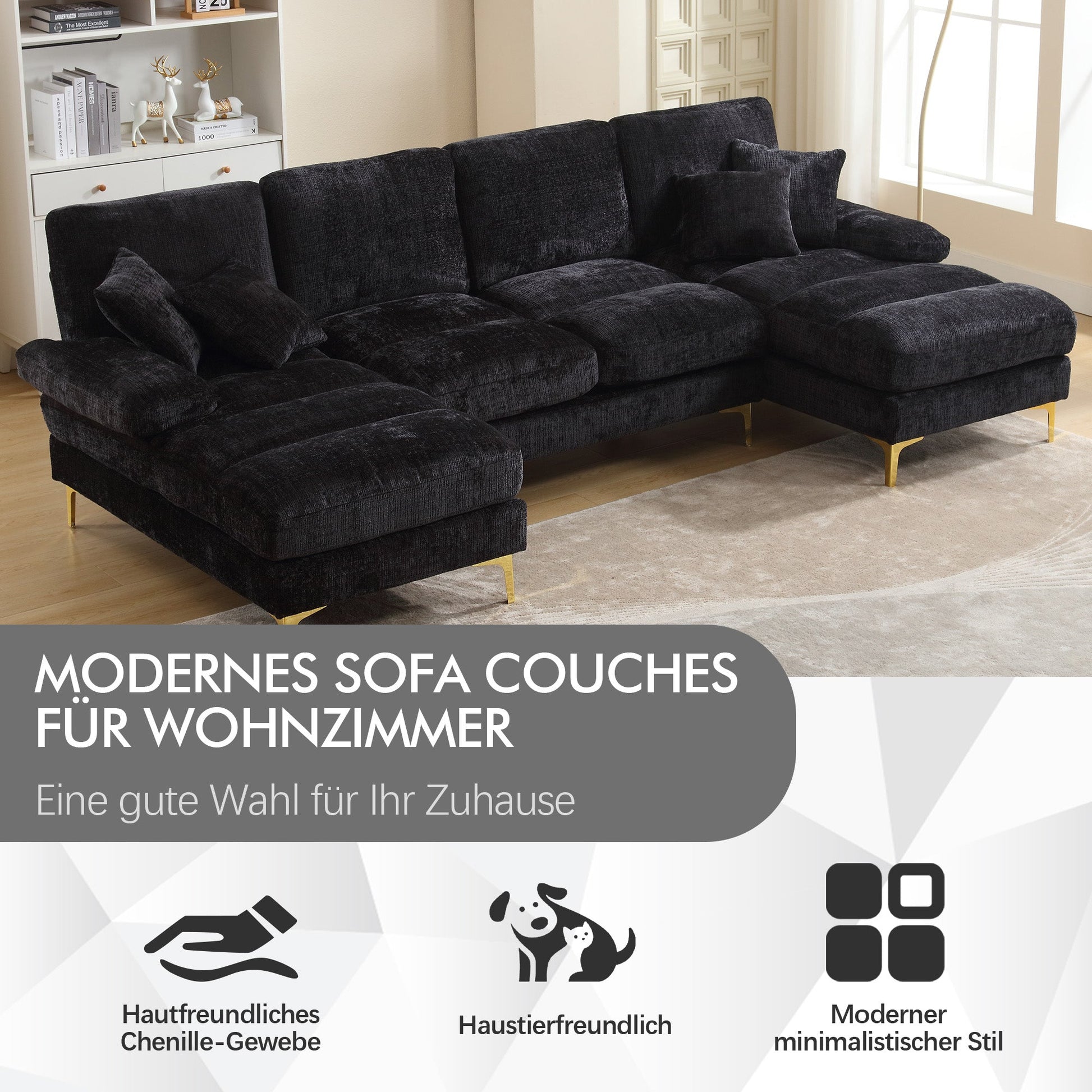 Sturdy solid wood frame, chenille fabric, filled with high-density sponge, making this modular sectional sofa both beautiful and comfortable, it can be perfectly matched to your apartment, house, or conference room. Our modular sectional sofa is based on a solid hardwood frame with durable memory foam cushions embedded in the fabric. Solid black legs perfectly support the entire sofa and can be used for a long time.