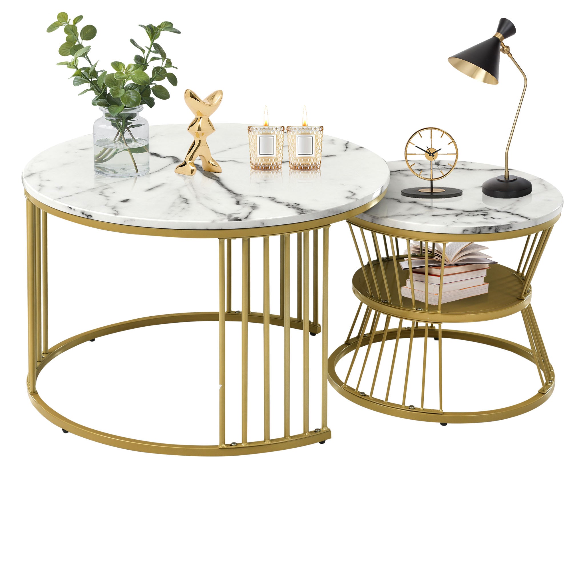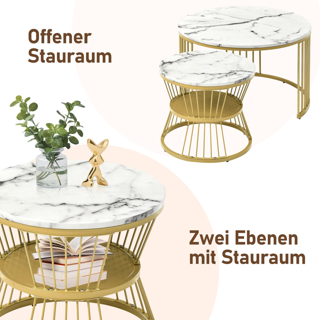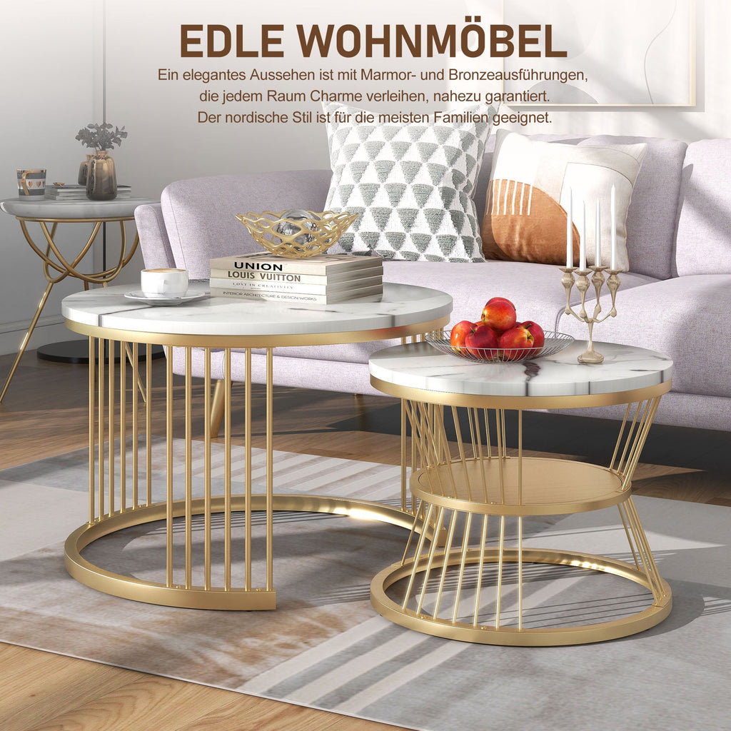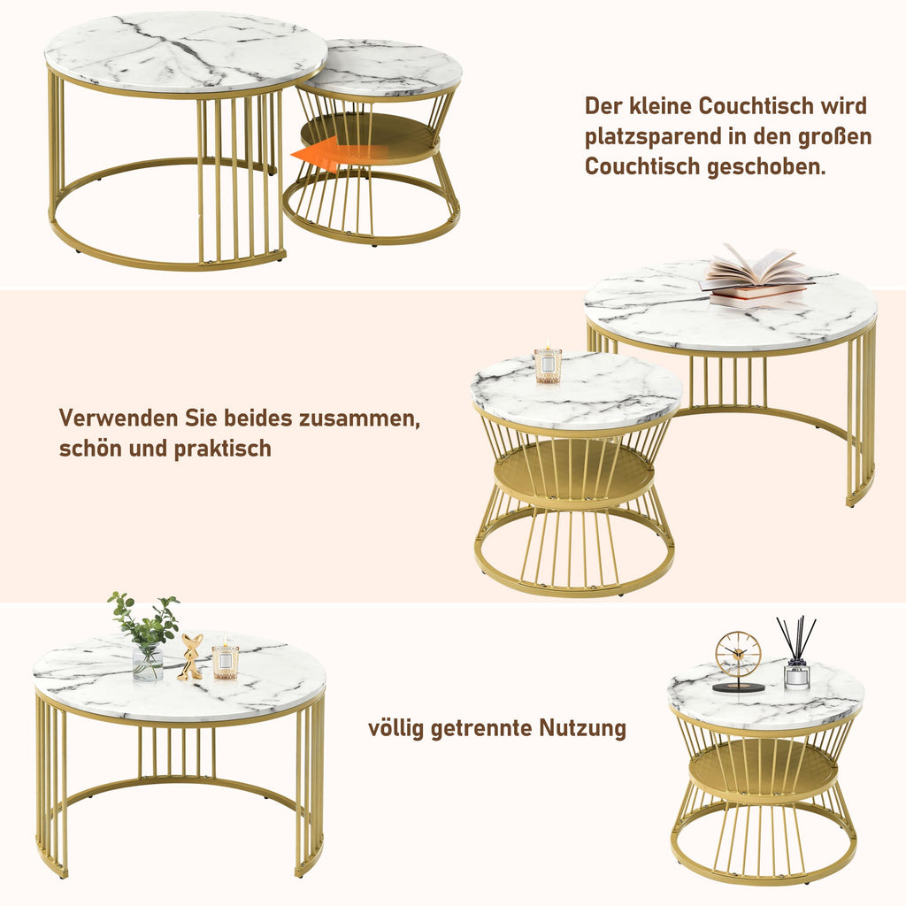 Modern Nesting Coffee Table, Set of 2, Golden Color Frame