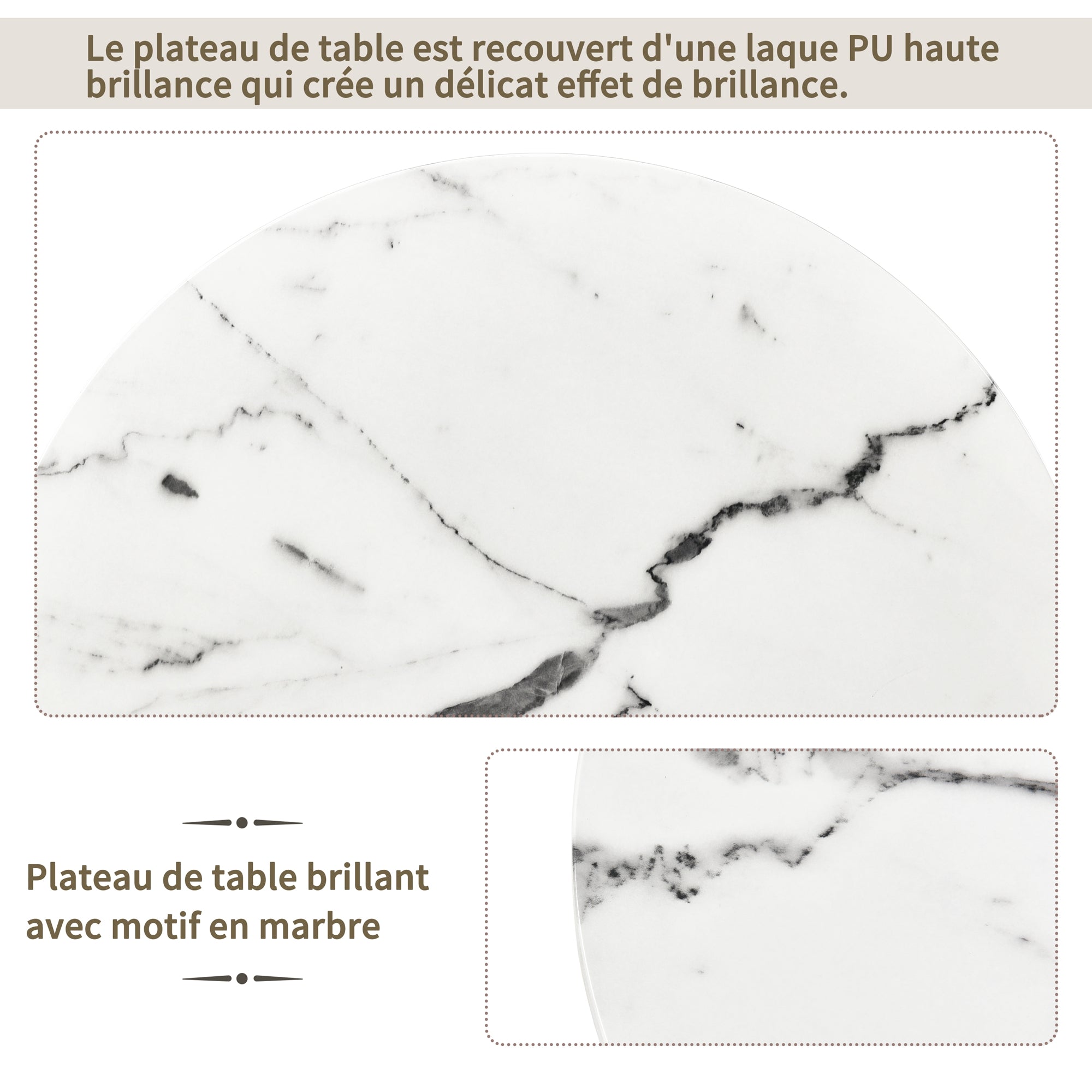 Table Top Material: MDF board + Triamine marble pattern + PU high-gloss lacquer