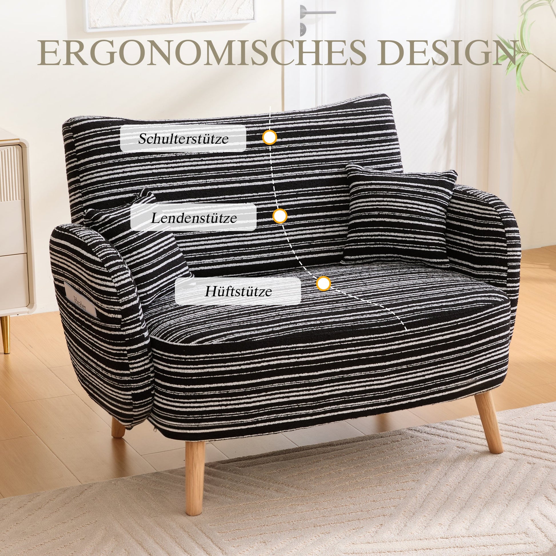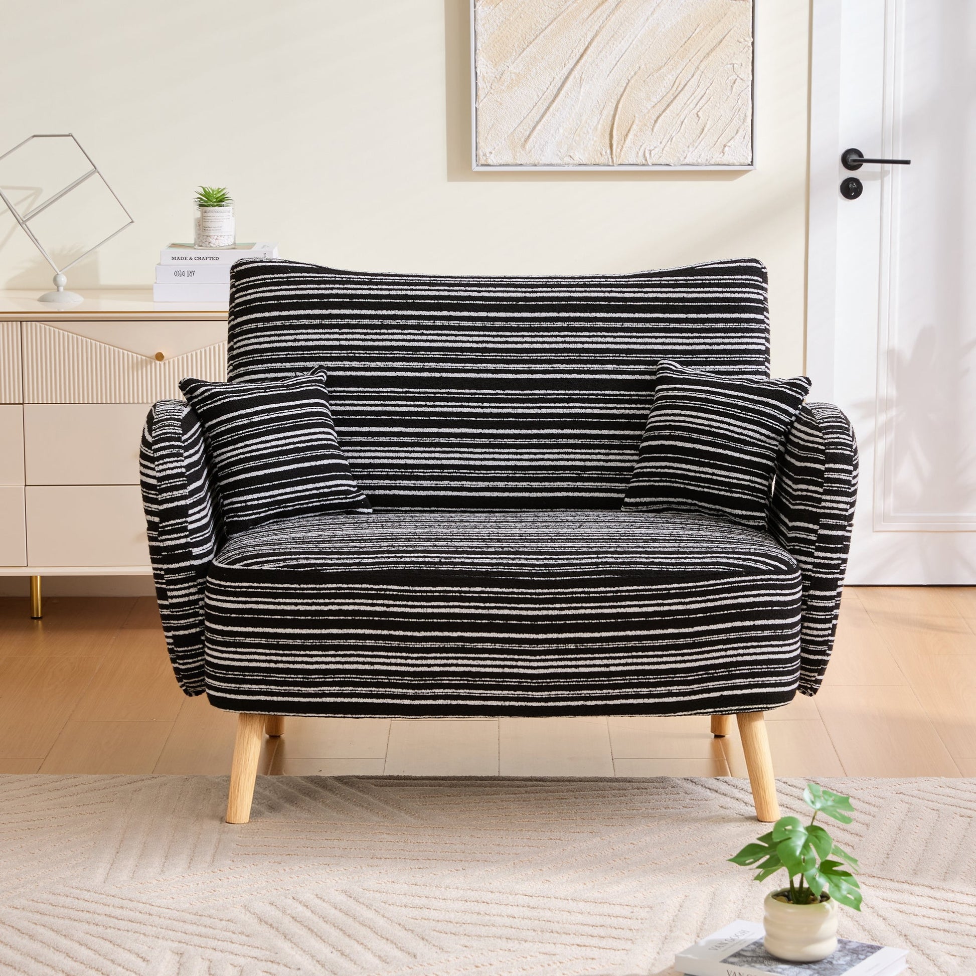 Modern Two-Seater Sofa with Armrest Cushions and Storage Bag, Boucle