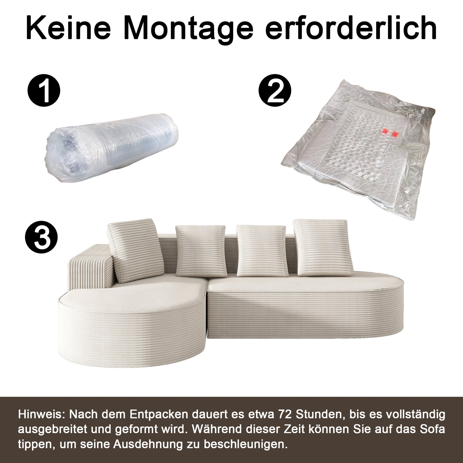 No assembly required: Save yourself the hassle of furniture assembly! This flat-pack sofa can be taken directly out of the box. No tools are needed to immediately enjoy its comfort and transform your living space into a cozy retreat, without any tedious setup.