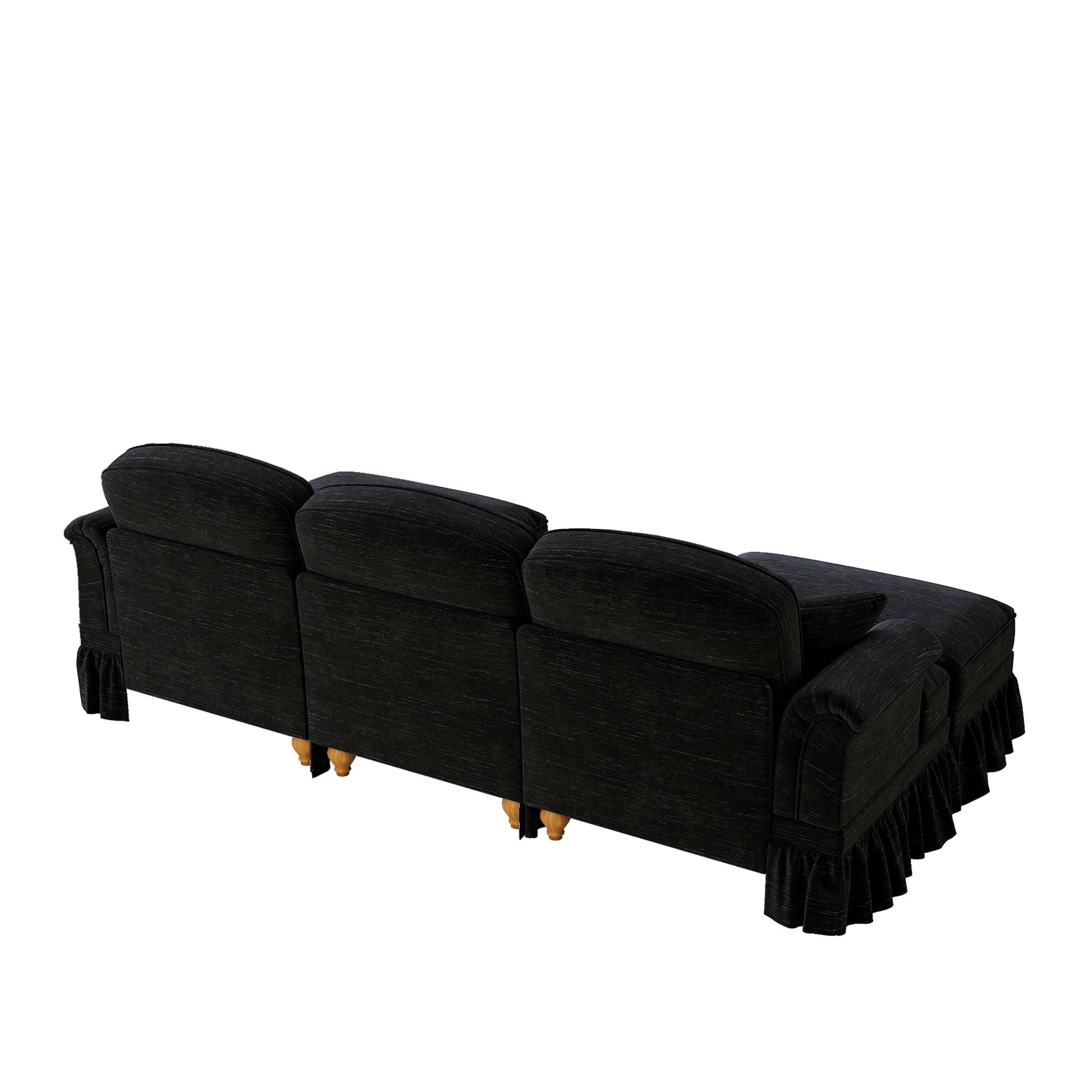 Modular U-Shaped Sofa Movable Ottoman Ruffled Apron Chenille Black