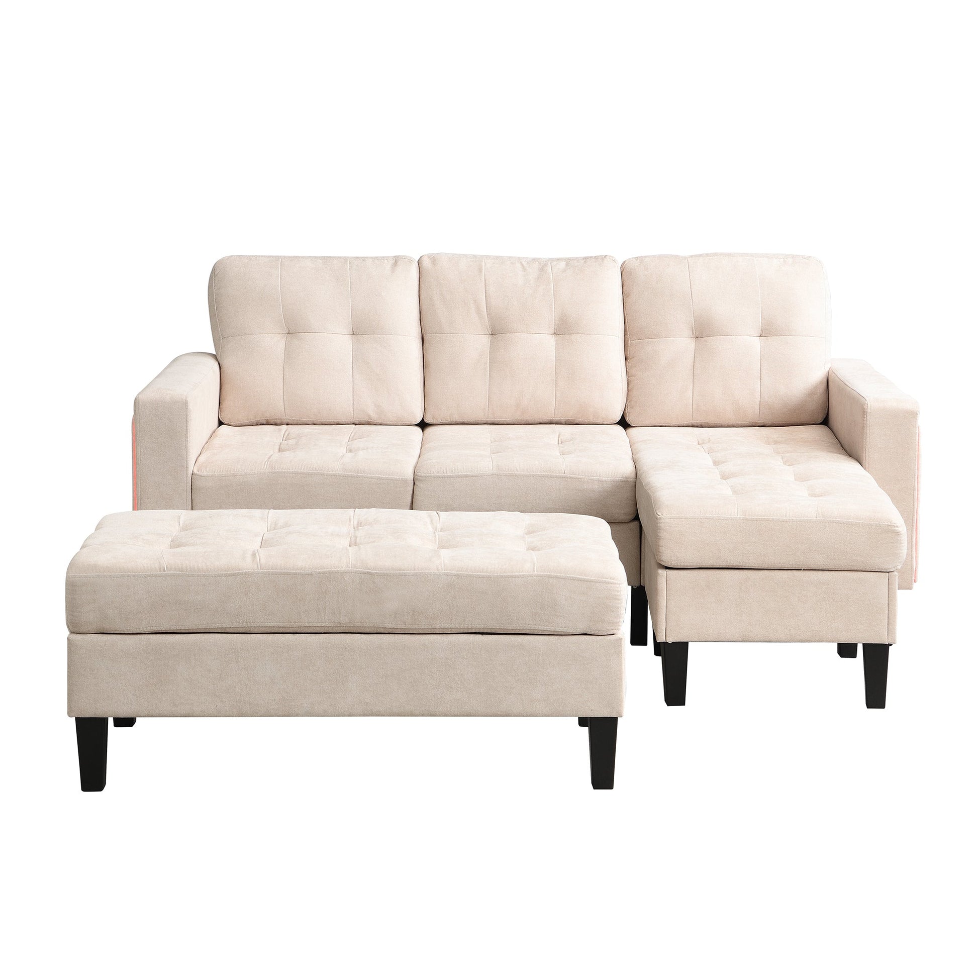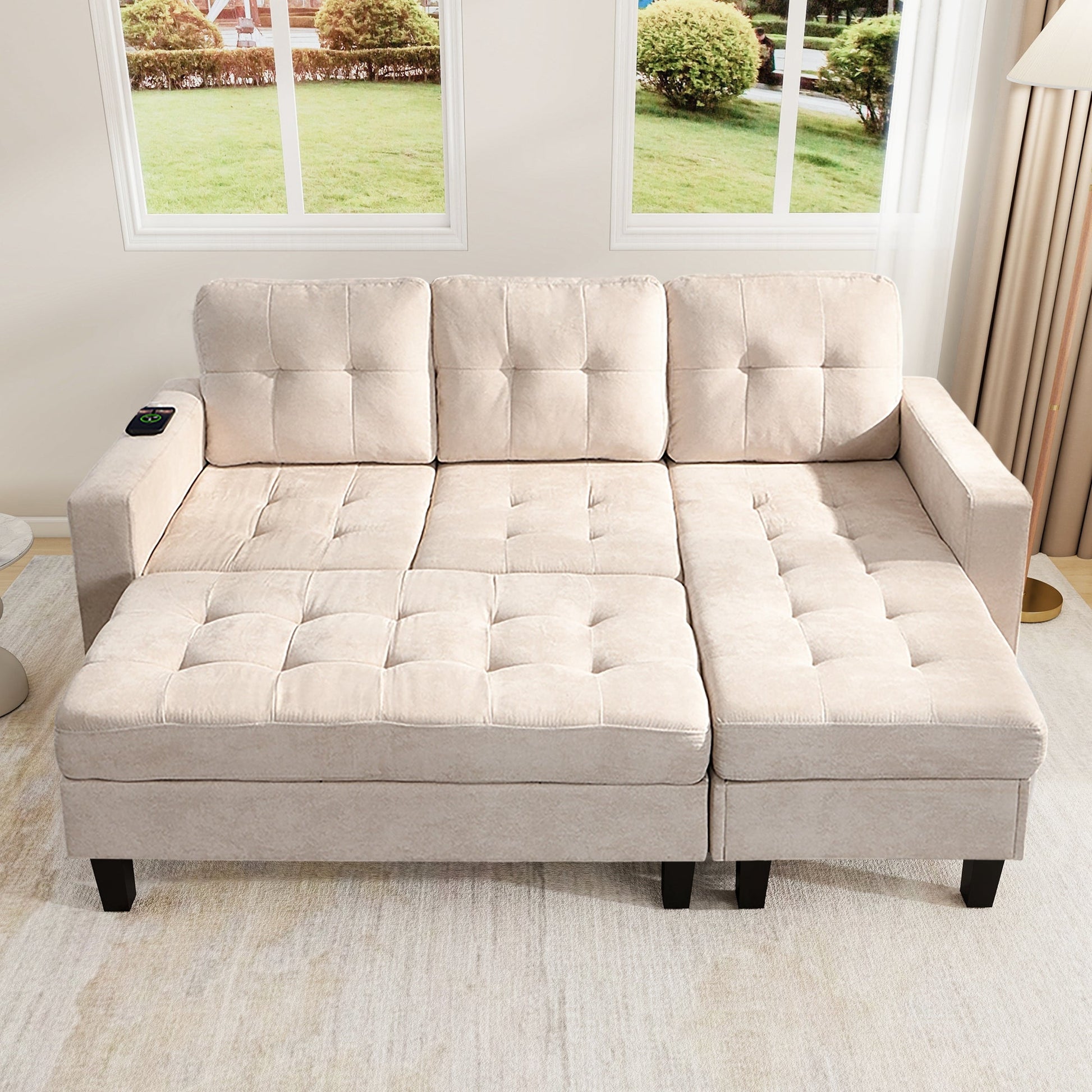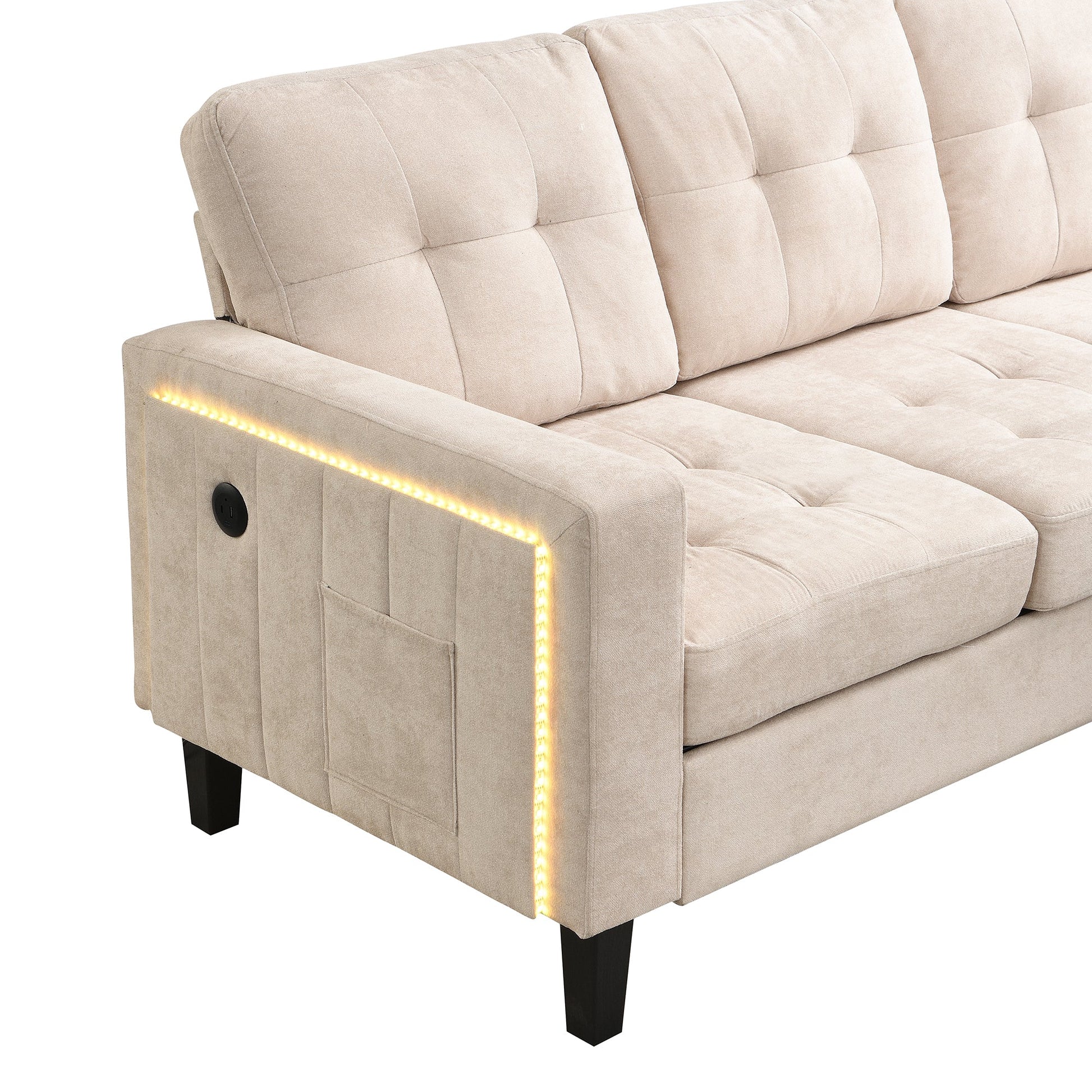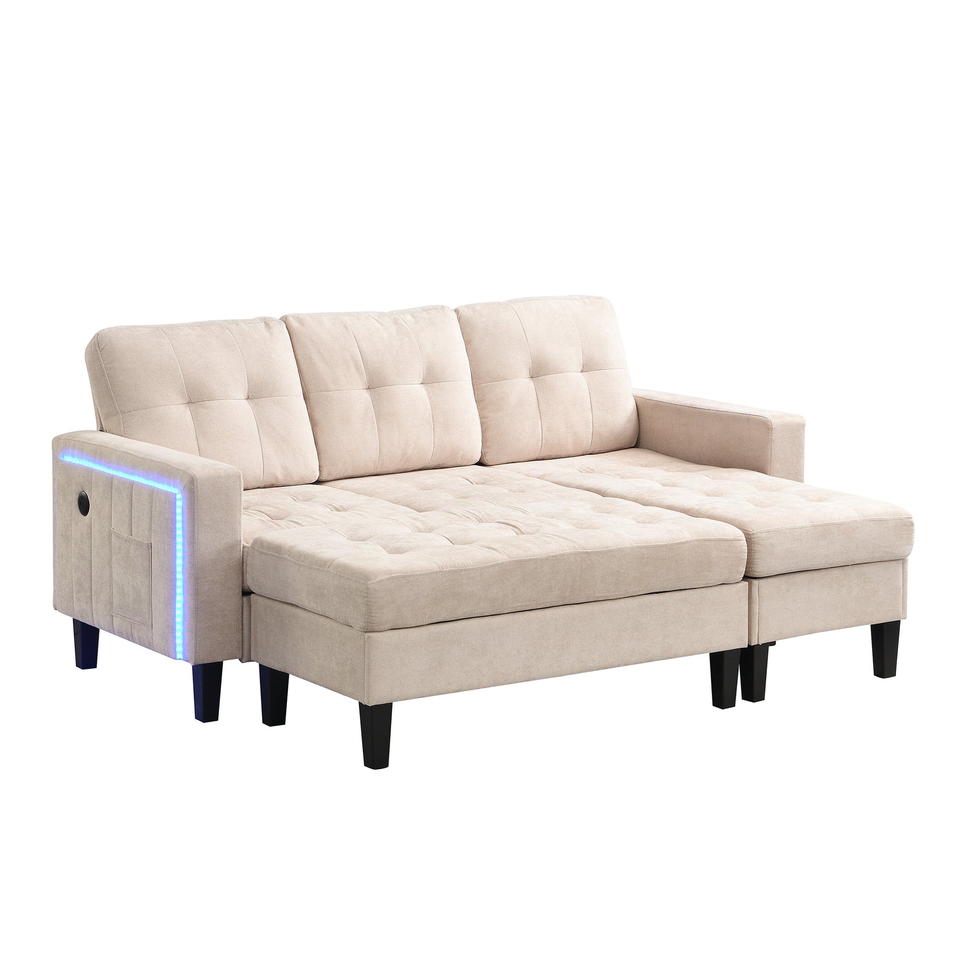 Multifunctional L-shaped Sofa Set with LED Lighting and Footstool, Modular Design