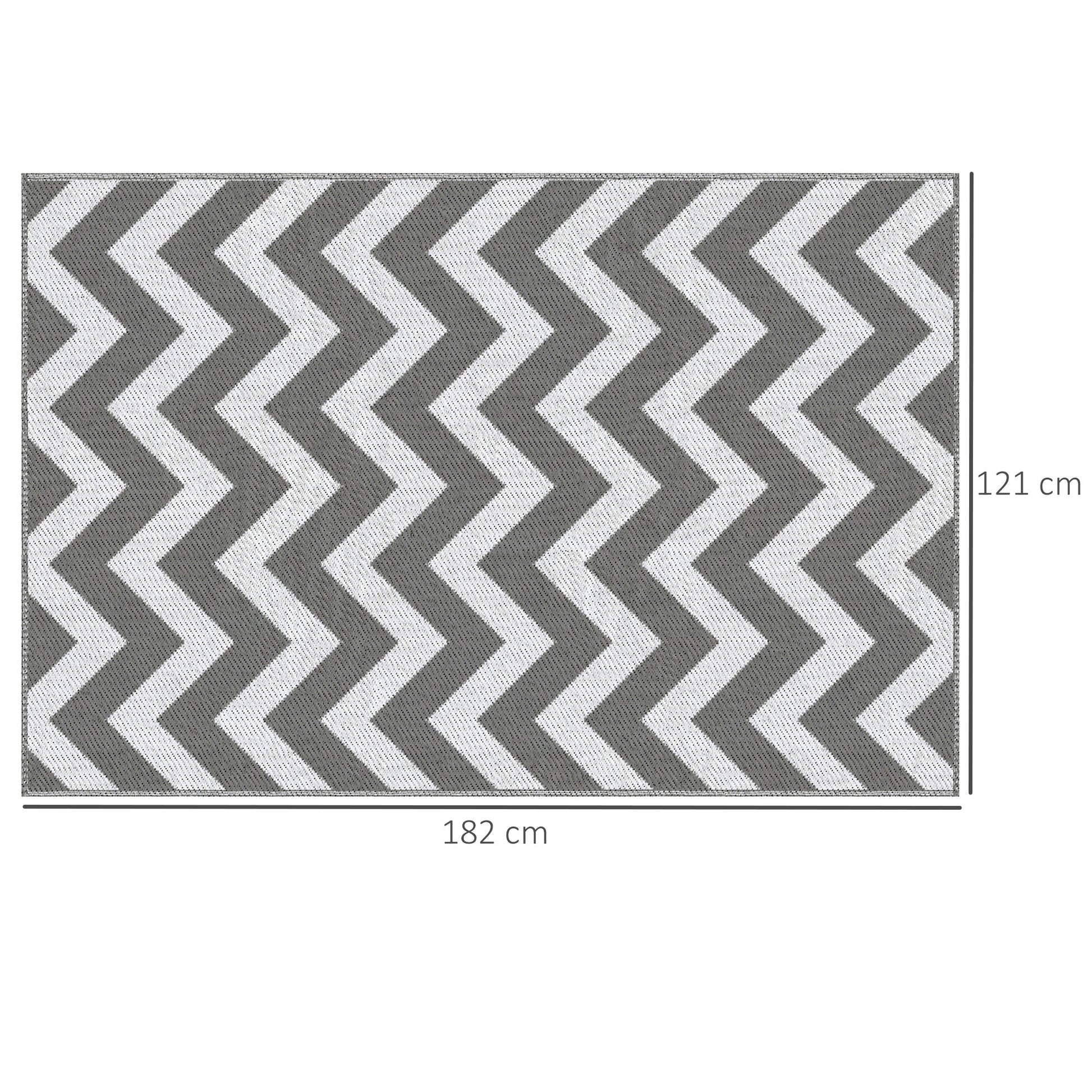 Product details: Overall dimensions are 121 x 182 cm. Note: This outdoor rug is not fire-resistant; please keep it away from fire.