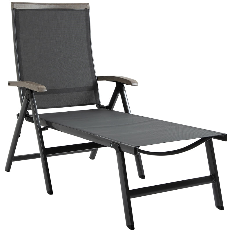 Outdoor Folding Sun Lounger, 5-Position Adjustable Aluminium, Grey