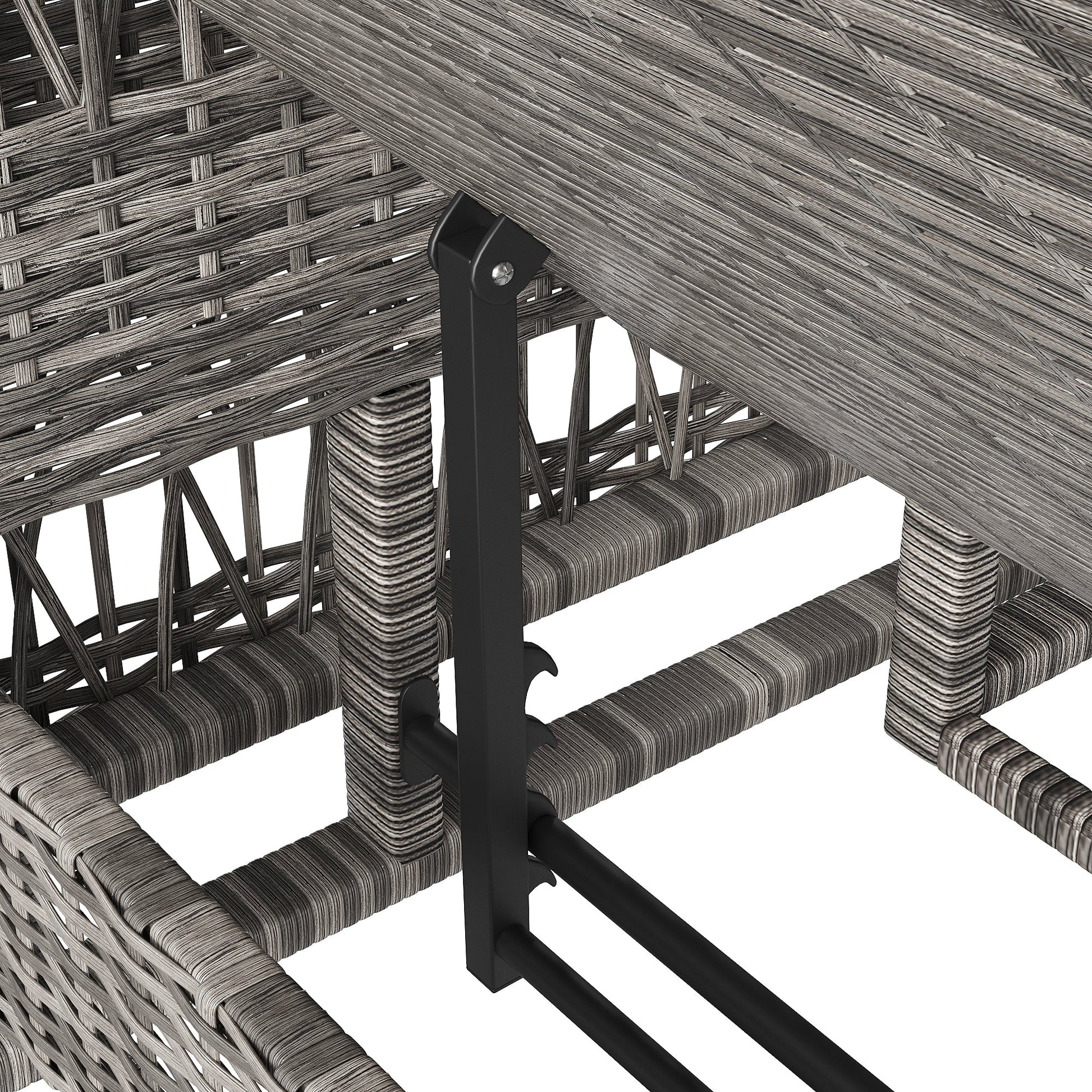 This rattan outdoor lounger impresses with its remarkable stability and load-bearing capacity, ensured by a sturdy metal frame and high-quality PE rattan. The main lounger can support a maximum weight of 180 kg, while the optional extension module offers a load capacity of 80 kg. Even when folded, the total maximum load capacity of 180 kg is maintained, allowing safe and worry-free relaxation. This high load capacity makes the lounger suitable for one person and guarantees long-term stability and safety during daily outdoor use, even in changing weather conditions.
