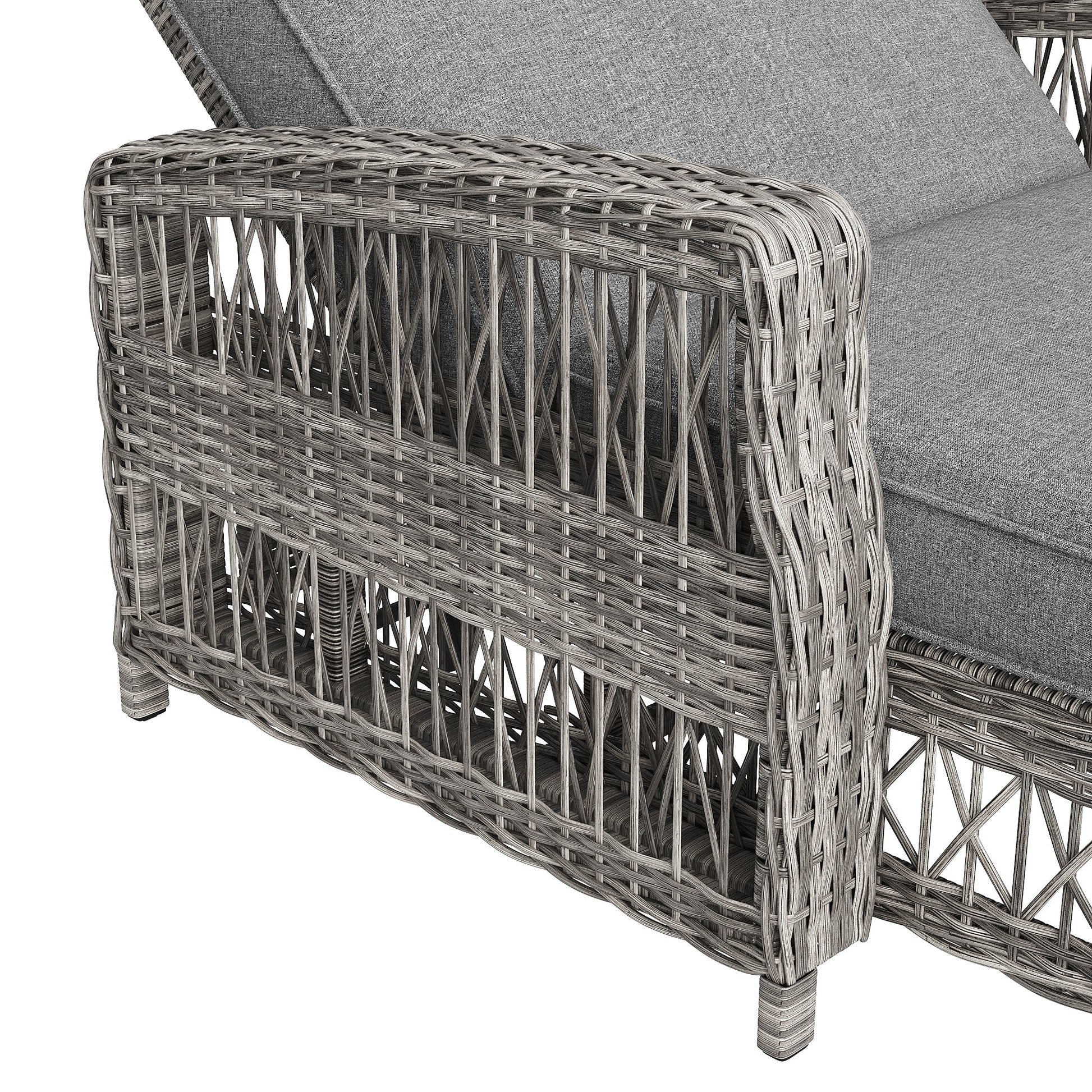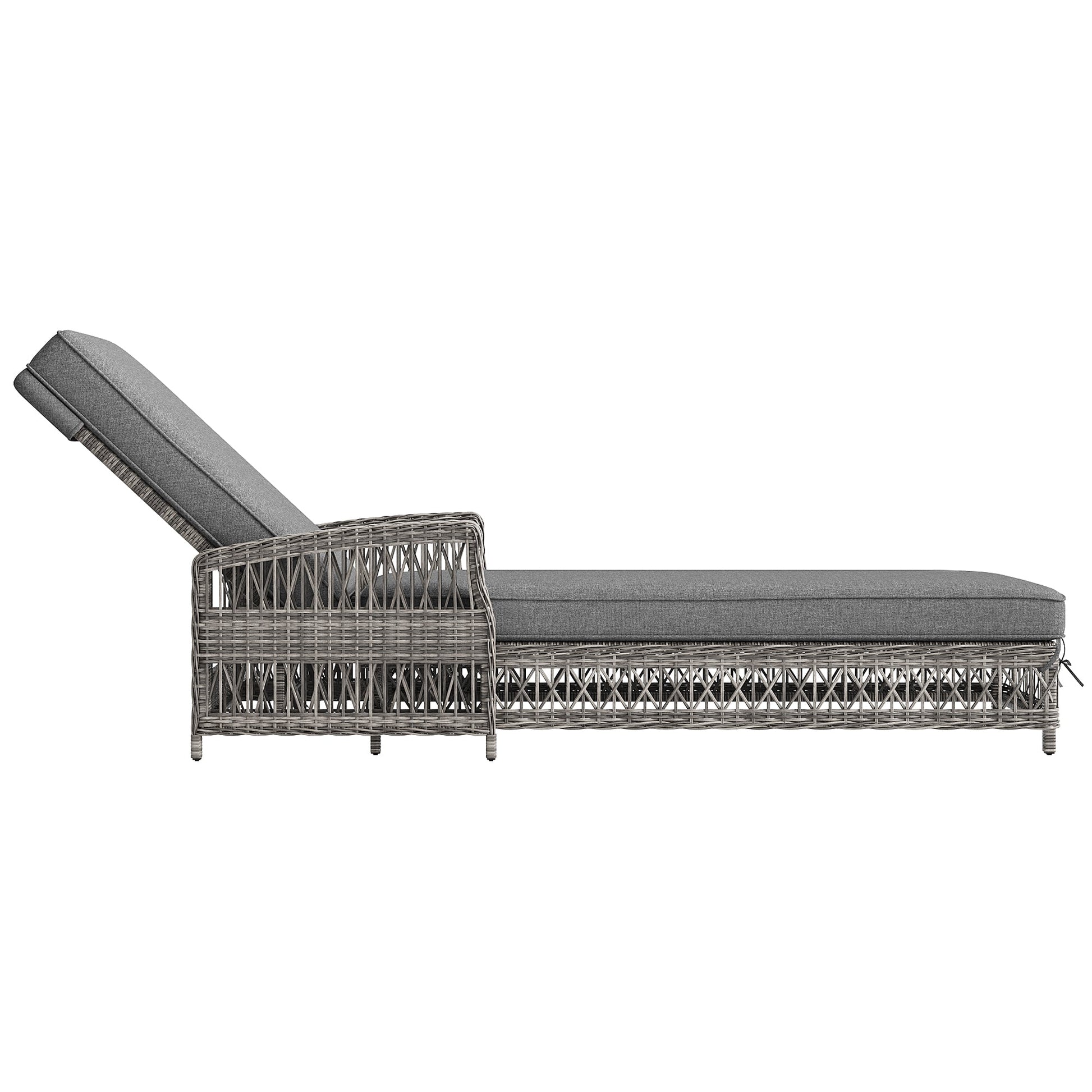 Outdoor Rattan Lounger Set of 2 with Adjustable Backrest and Removable Cushion, Grey