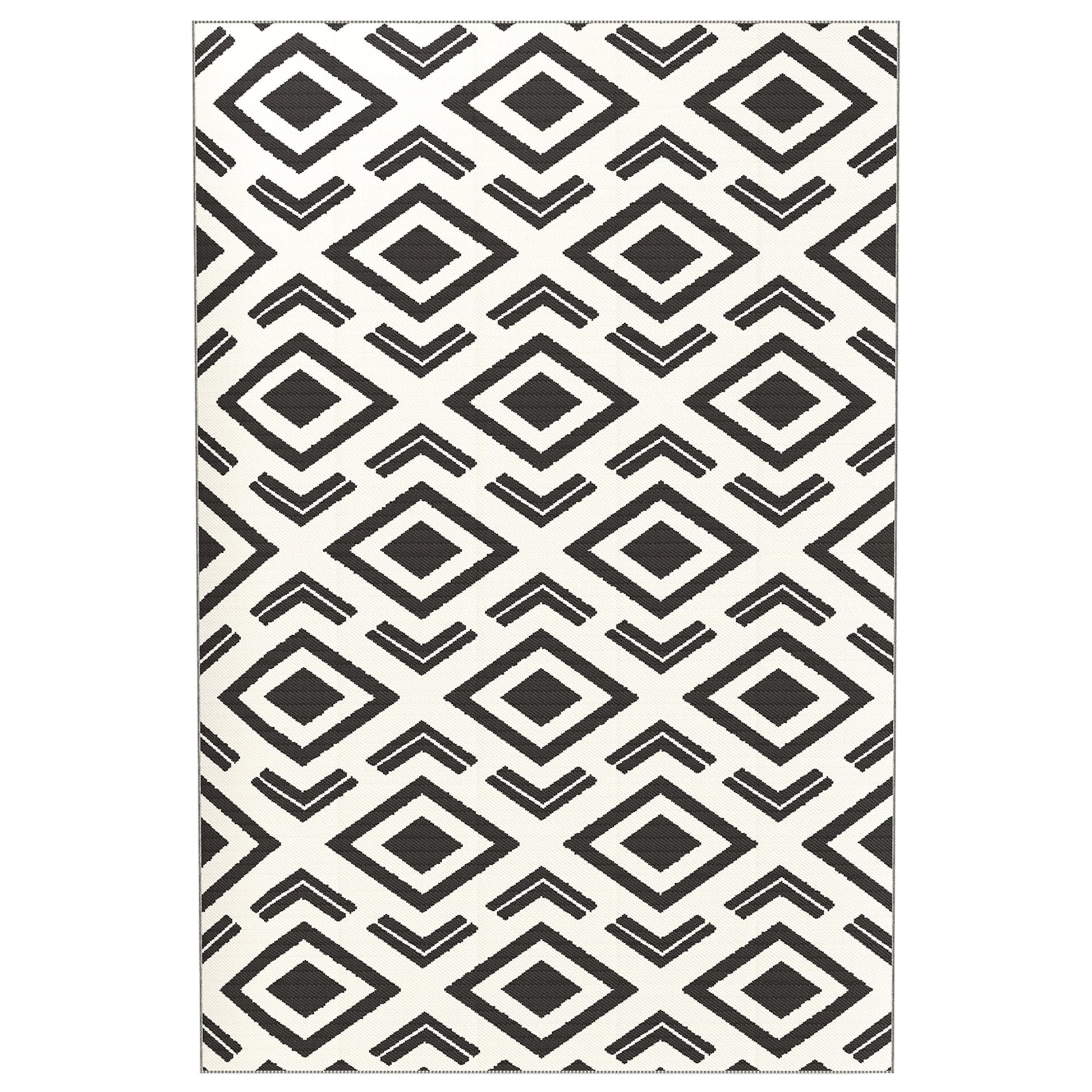 Outdoor Rug, Robust Weatherproof Foldable, Black and White