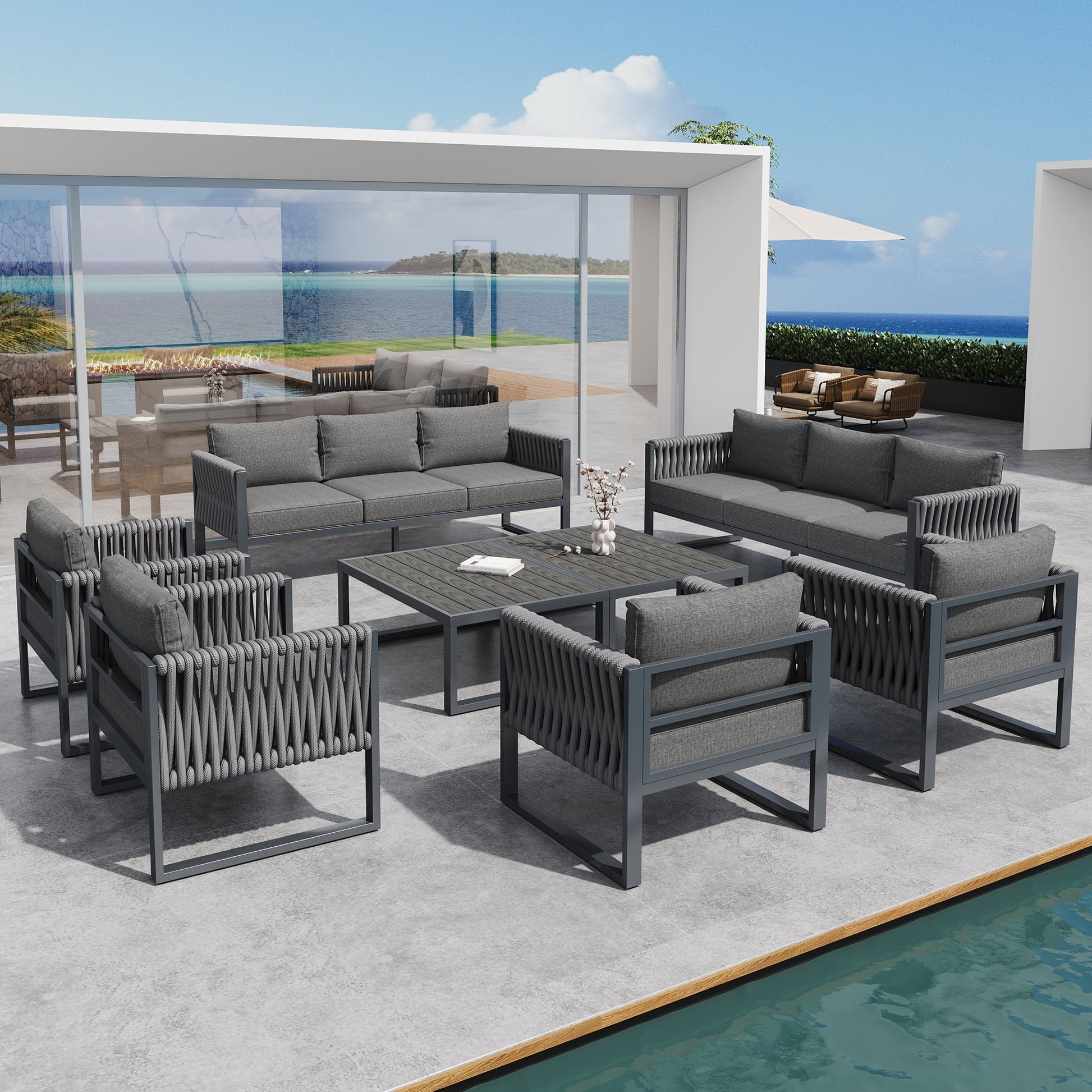 Outdoor Sofa Lounge Set 10-Seater Rustproof Metal Frame - Grey