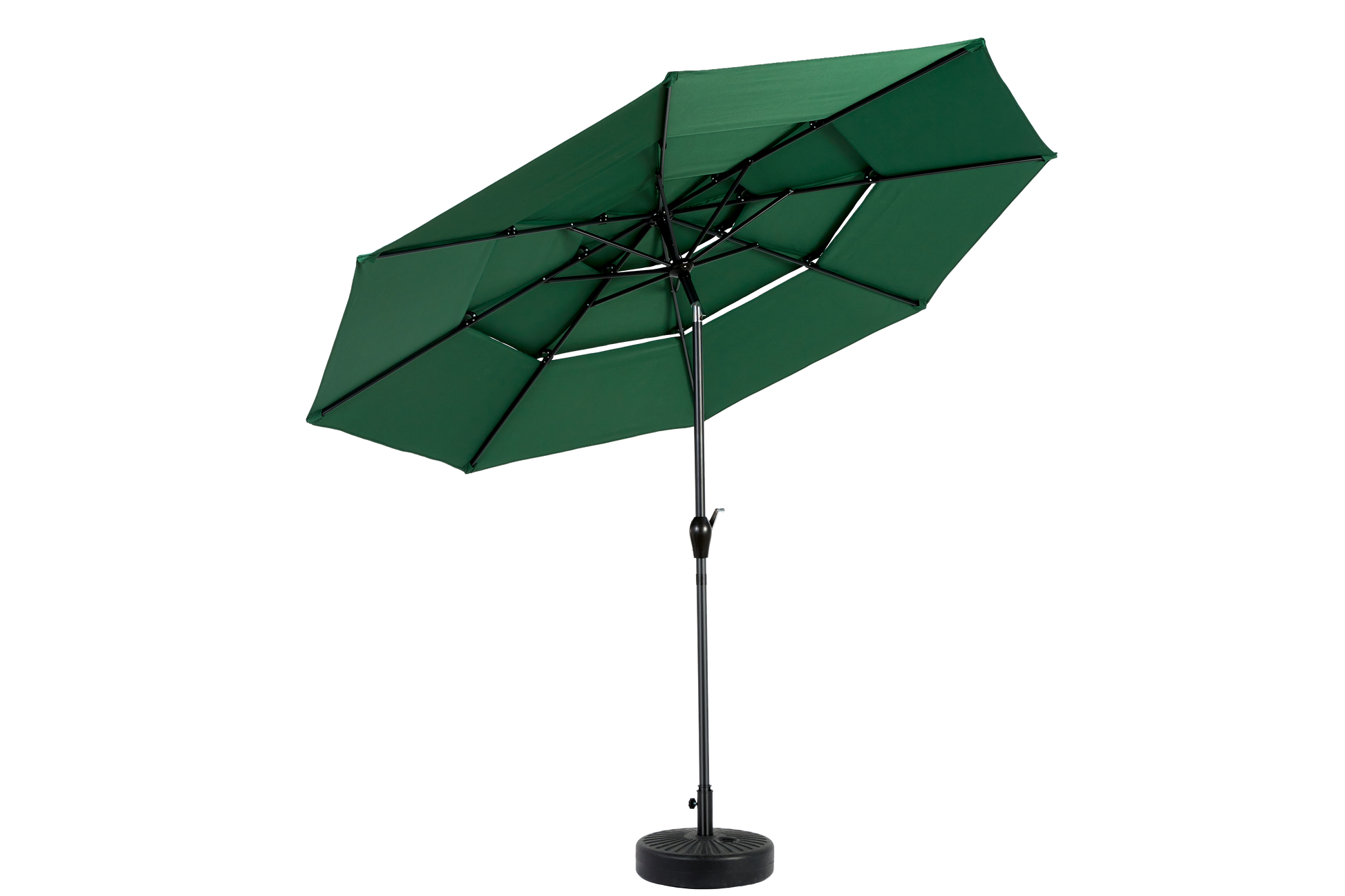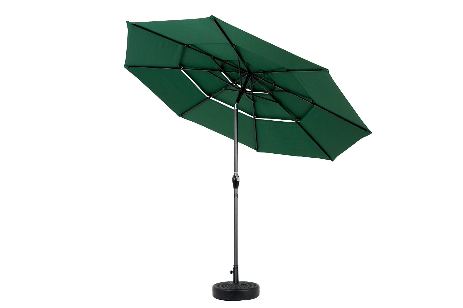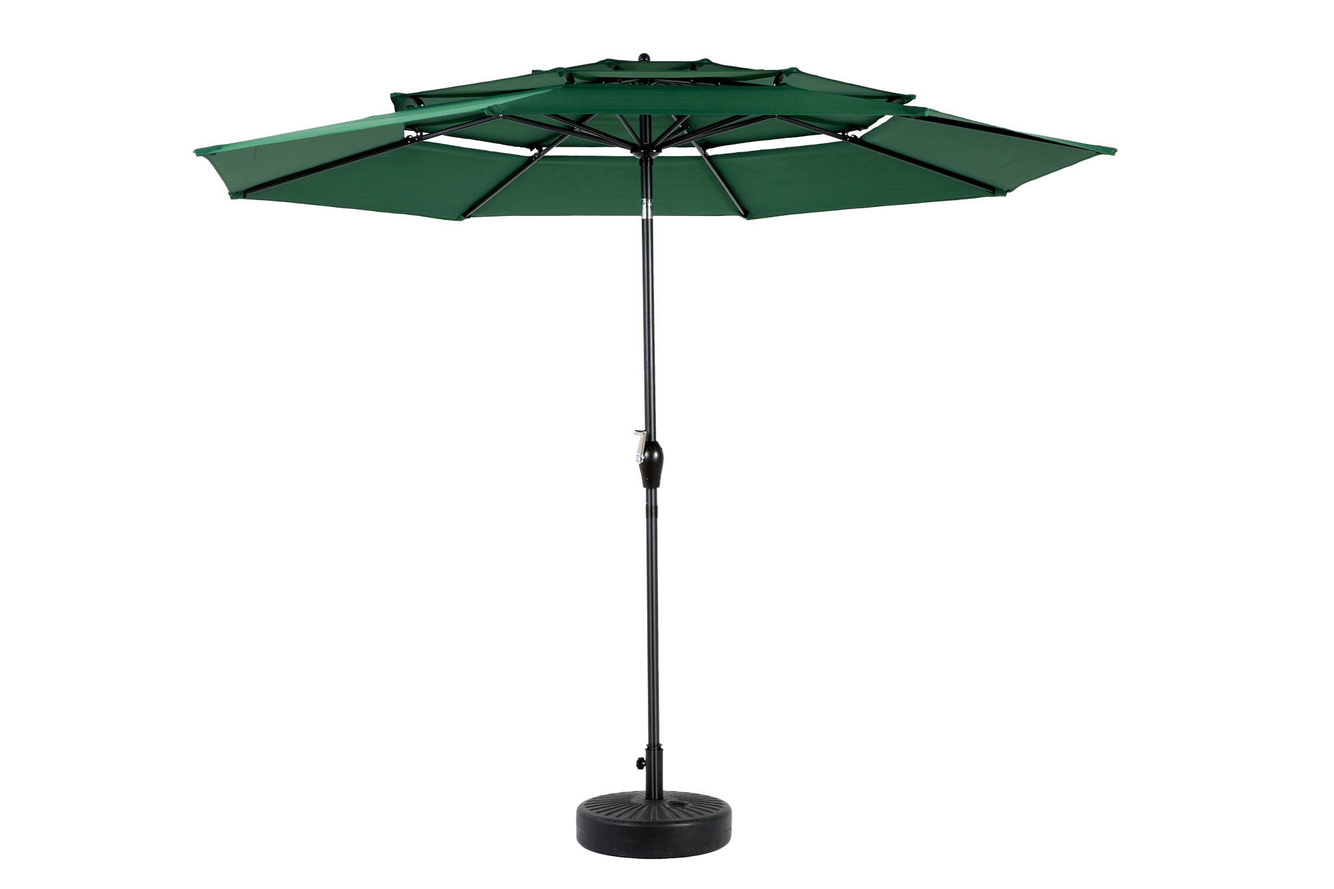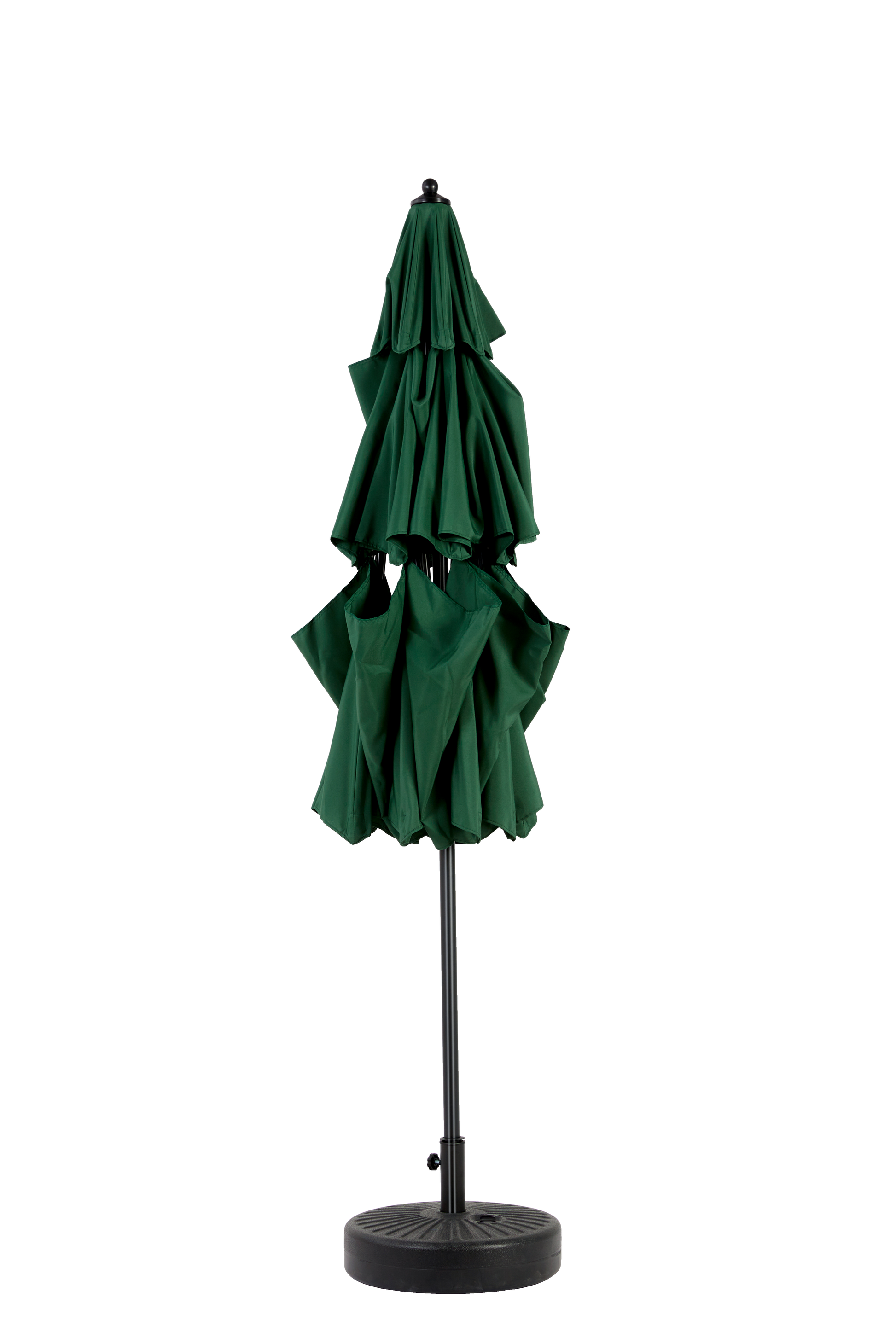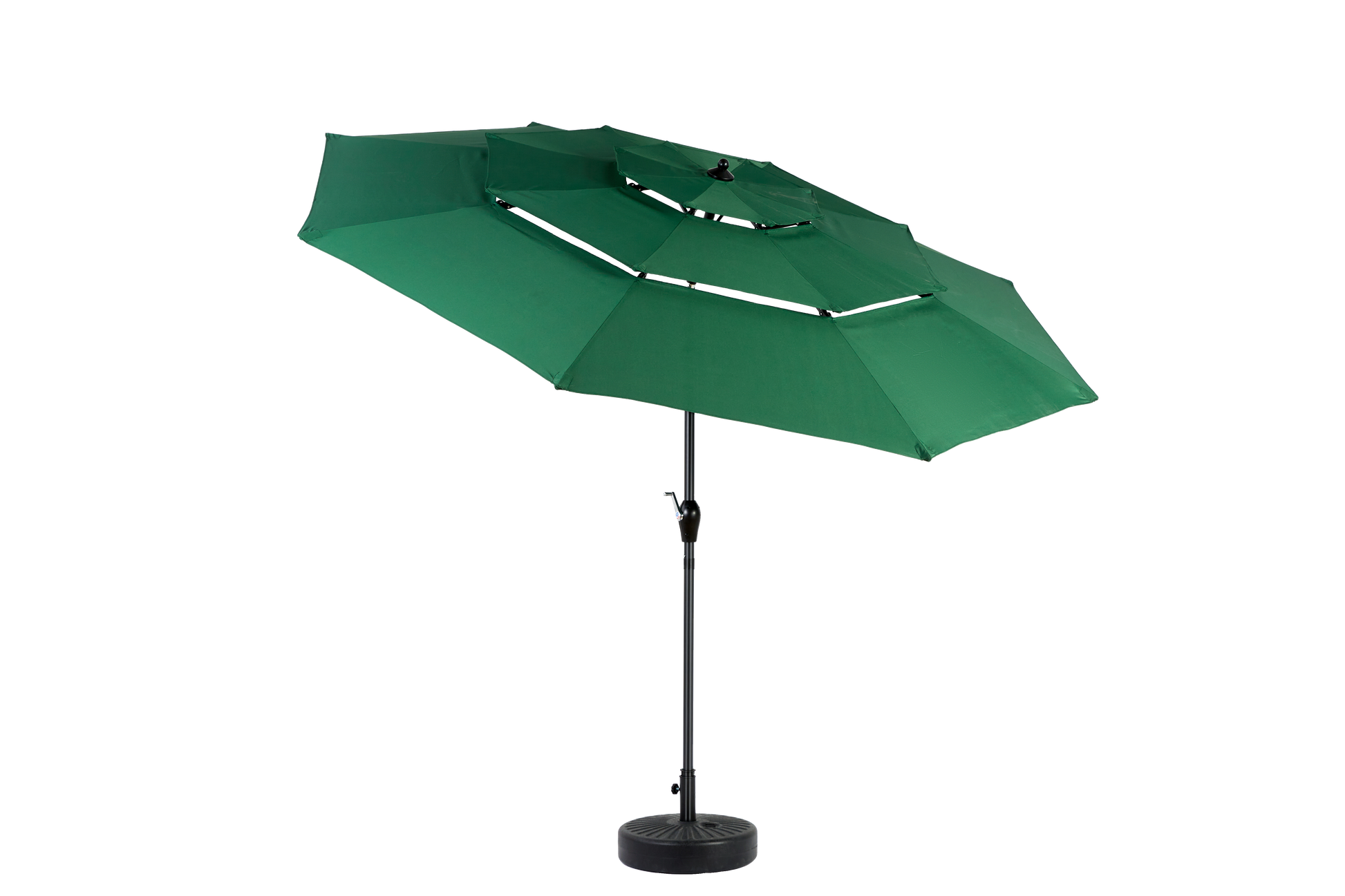 This market umbrella has a crank mechanism, you can easily open and close the umbrella in a few seconds by rotating the crank handle. No base is included and lightweight.