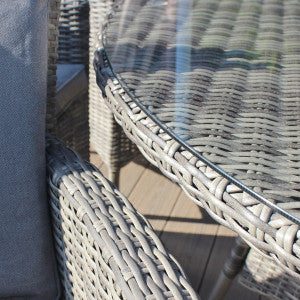 Like all Rathwood Furniture, it’s designed with luxury all-weather rattan, crafted from a high-quality natural weave with varied textures and tones woven around 1.2mm thick cast aluminium frames meaning this set will not rust and is fine to be left outdoors. The table top is made of 5mm tempered glass for safety. All cushions are machine washable and made exclusively of the highest quality UV-protected & weatherproof materials. There is little to no maintenance on this set making it the perfect addition to your home! It comes with a 5-Year Structural Guarantee but please note the glass is not covered by the guarantee. There is a minimal, straightforward assembly required.