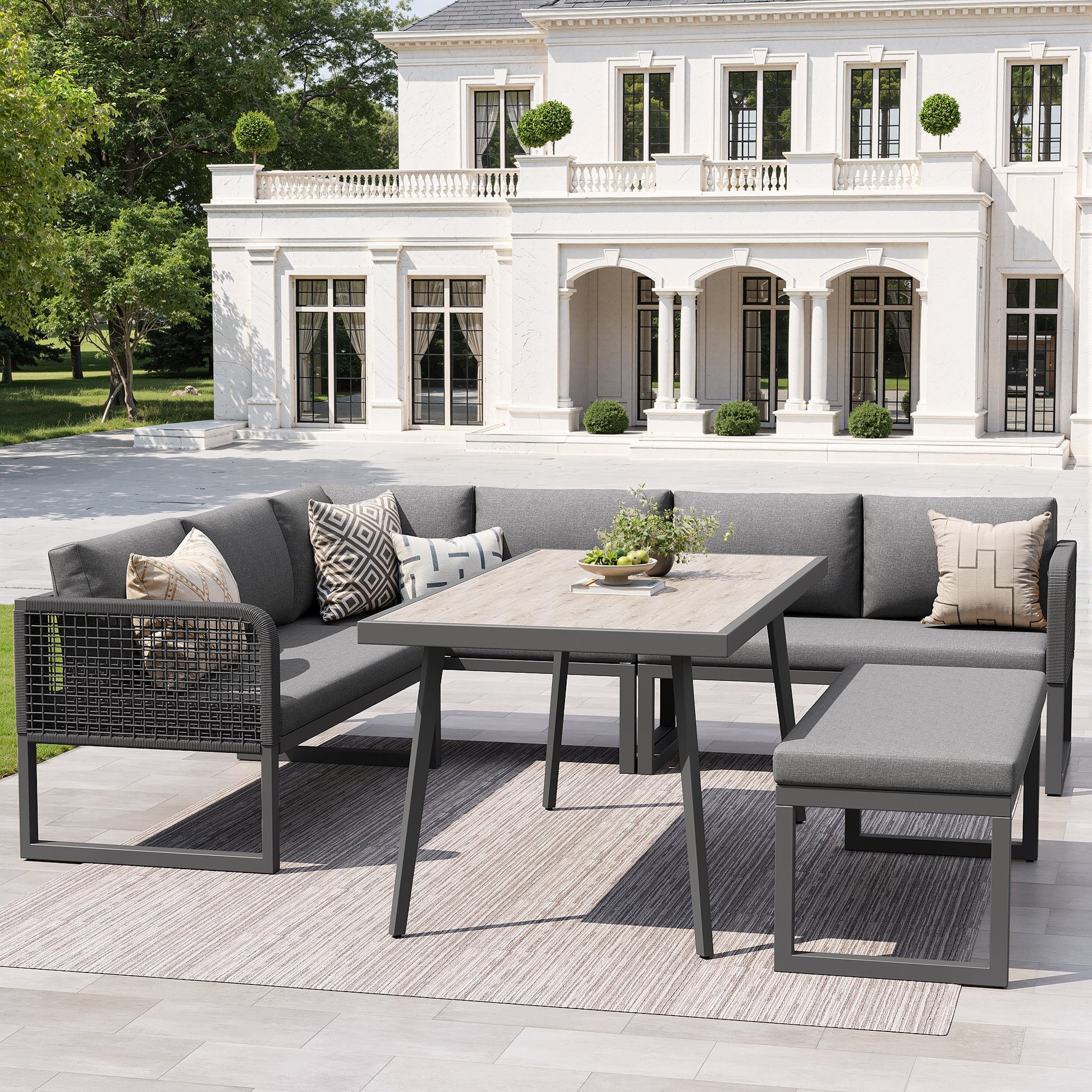 Patio Sofa Set 6-8 Seater Hand-Woven Rattan with Cushions - Grey