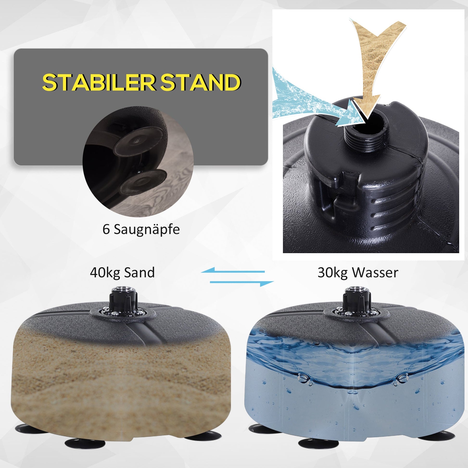The sturdy base of the punching ball features four suction cups that adhere well to smooth surfaces. For added stability, it can also be weighted down with sand or water.