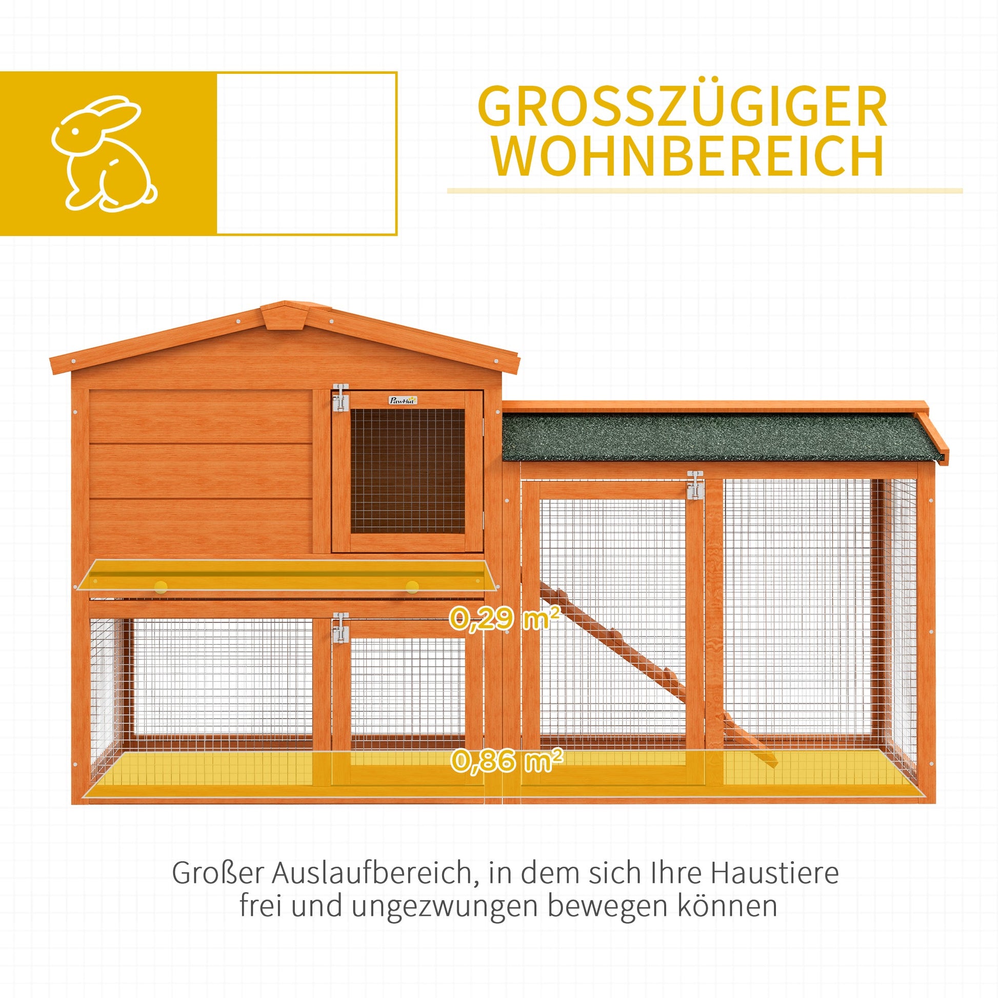 Rabbit Hutch 2 Levels Outdoor Run and Ramp, Fir Wood, Orange