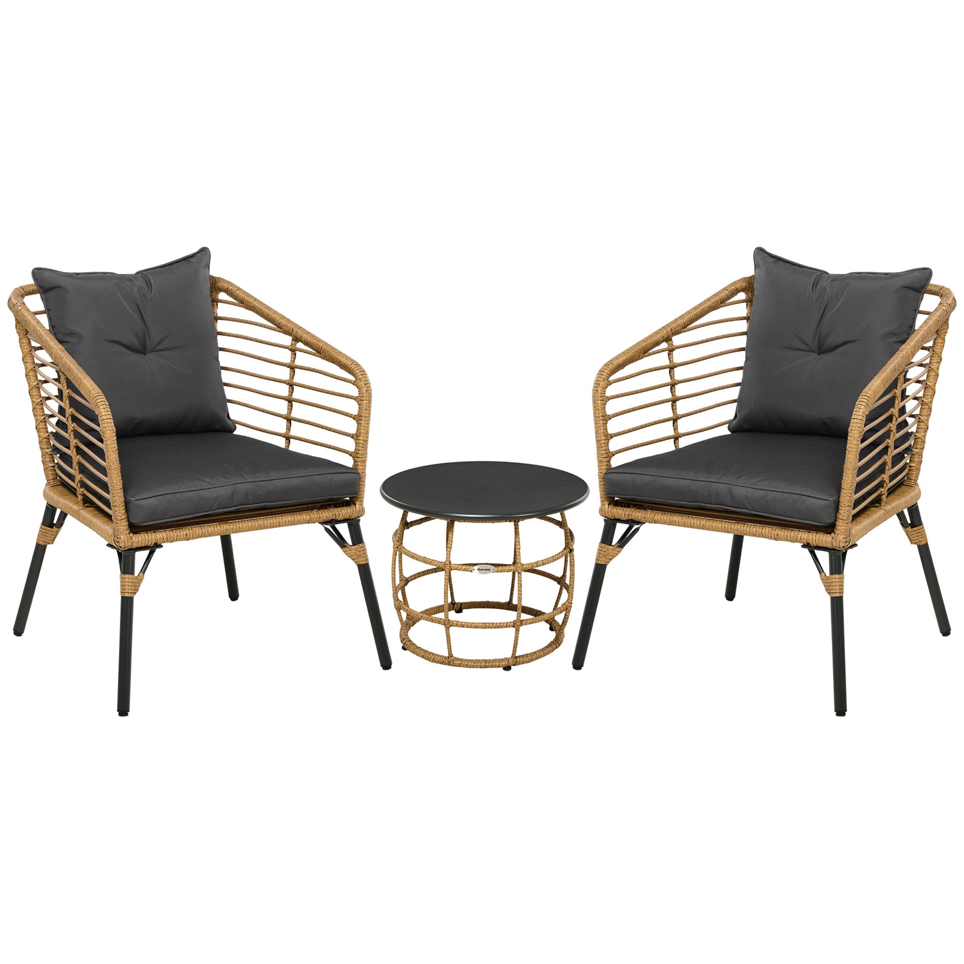 Rattan Garden Furniture Set, 3-Piece Bistro with Table & 2 Chairs, Sand/Dark Grey