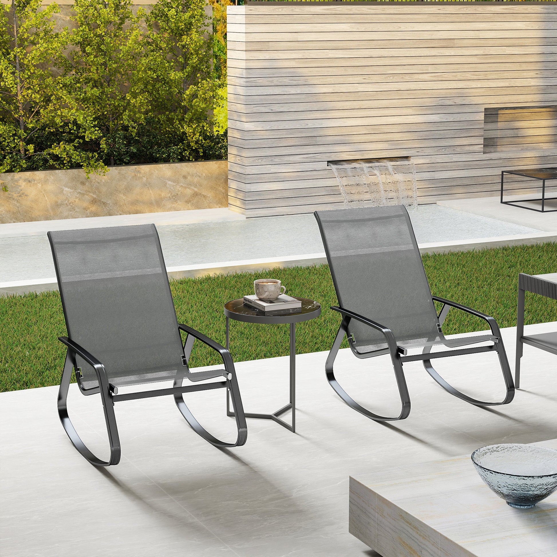 Quick-drying texteline mesh seats: Water-resistant fabric seats dry quickly and allow you to sit comfortably on this rocking garden chair set. Breathable and suitable for outdoor use.