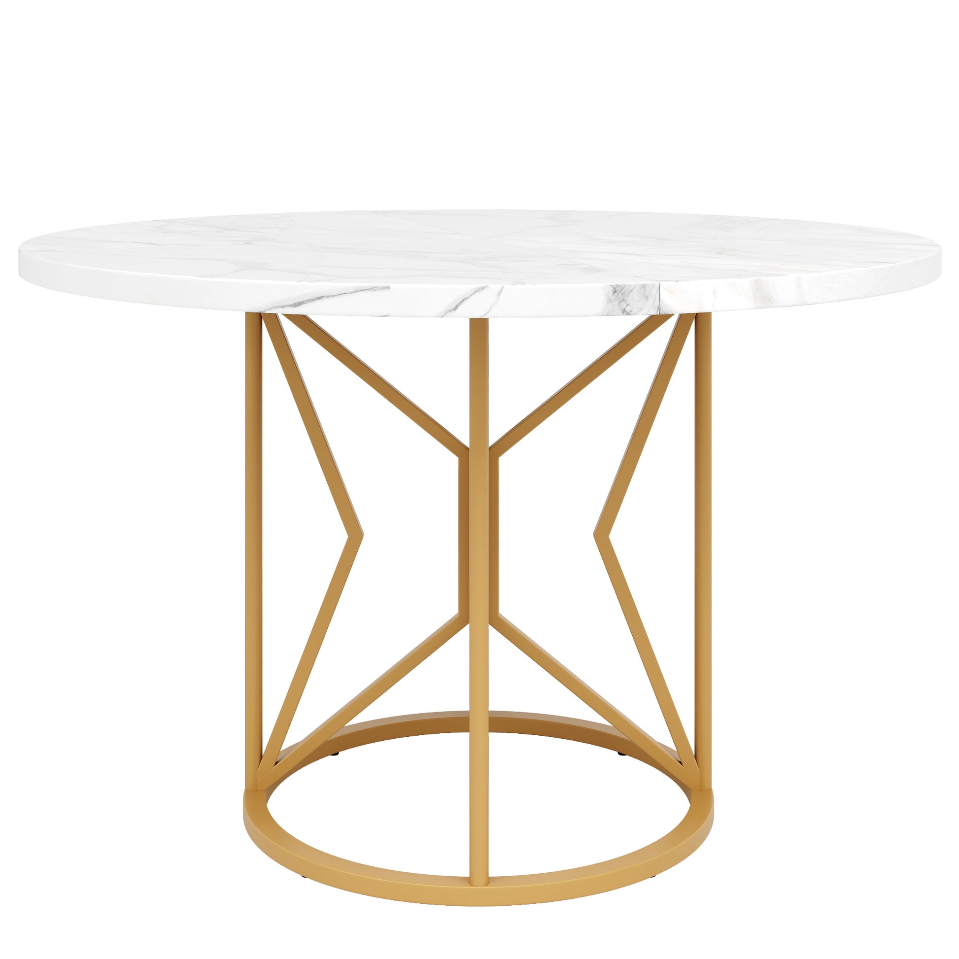 Round Dining Table 100cm Marbled MDF Geometric Metal Legs - Gold Accents