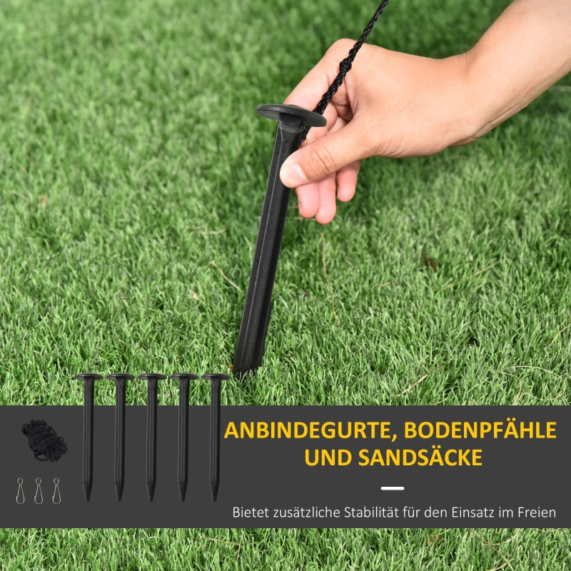 Product Specifications: Halloween tree overall dimensions: 156 cm (W) x 107 cm (D) x 274 cm (H). Included are 5 ground stakes, 3 guy ropes, and 1 sandbag to keep the inflatable decoration stable.