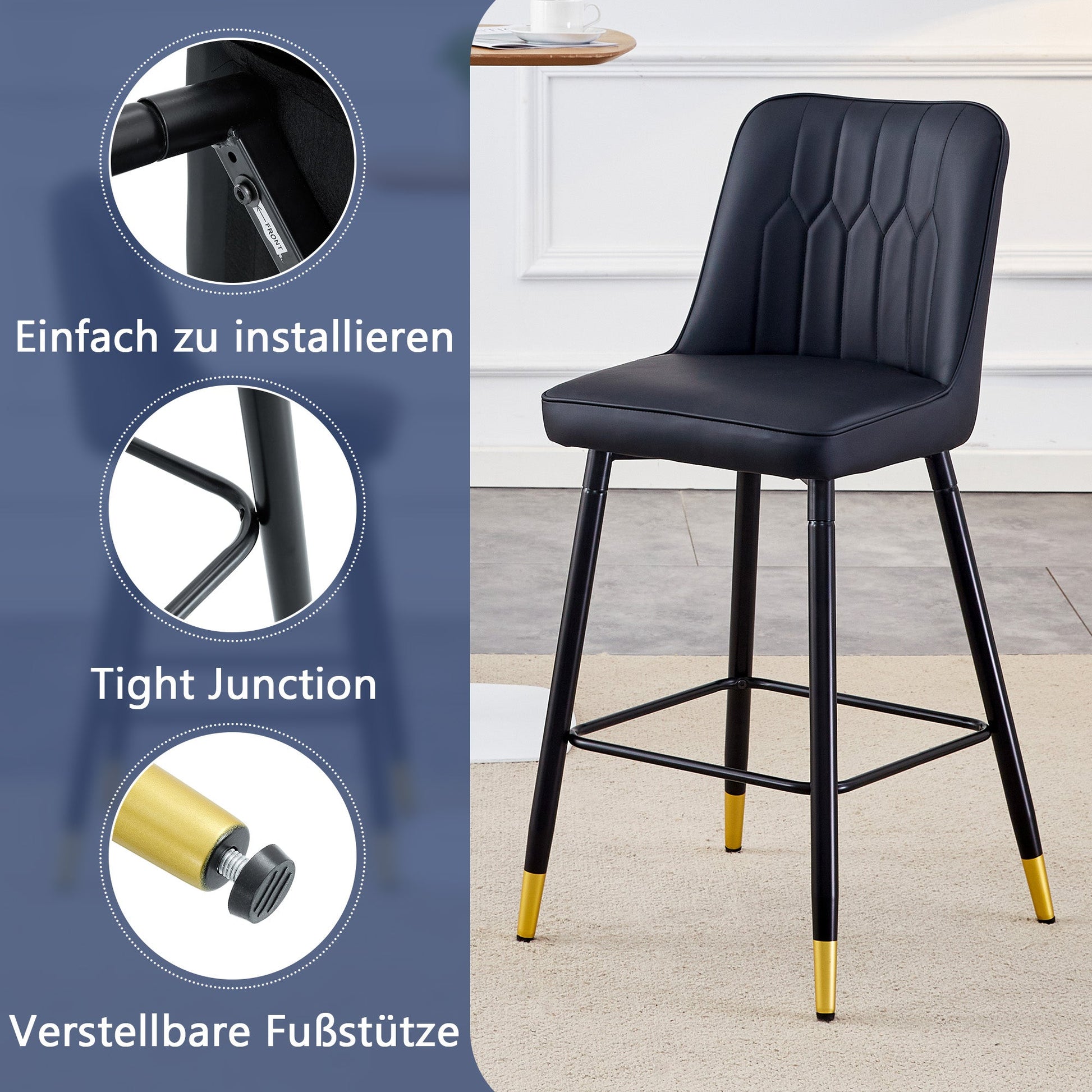 High Quality and Reliability: Made from high-quality materials and subjected to rigorous quality control, these bar stools ensure durability and safety for worry-free use. The stools are upholstered in black PU material, providing a soft and comfortable seat and backrest that is also easy to clean and maintain.