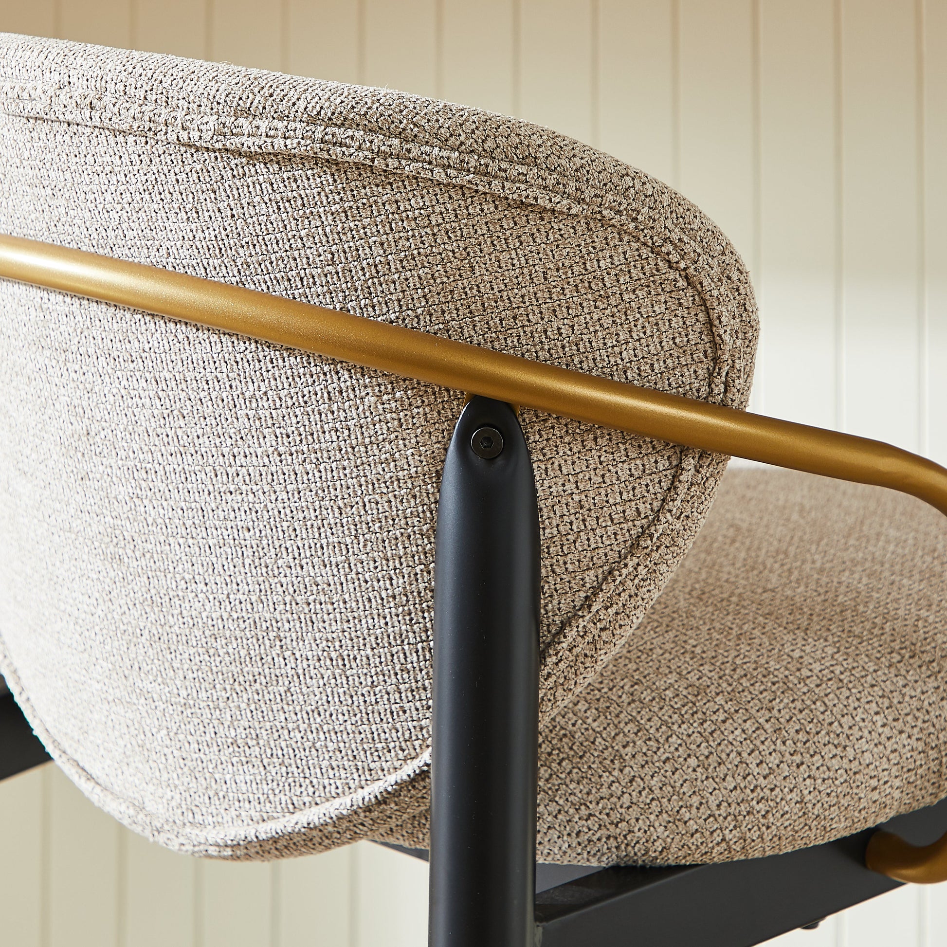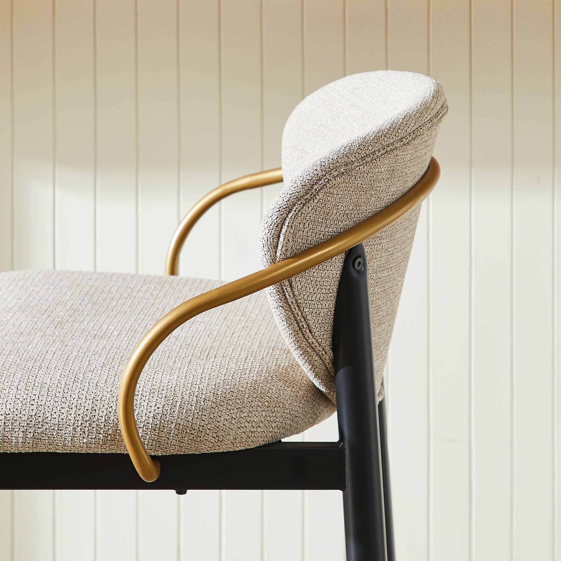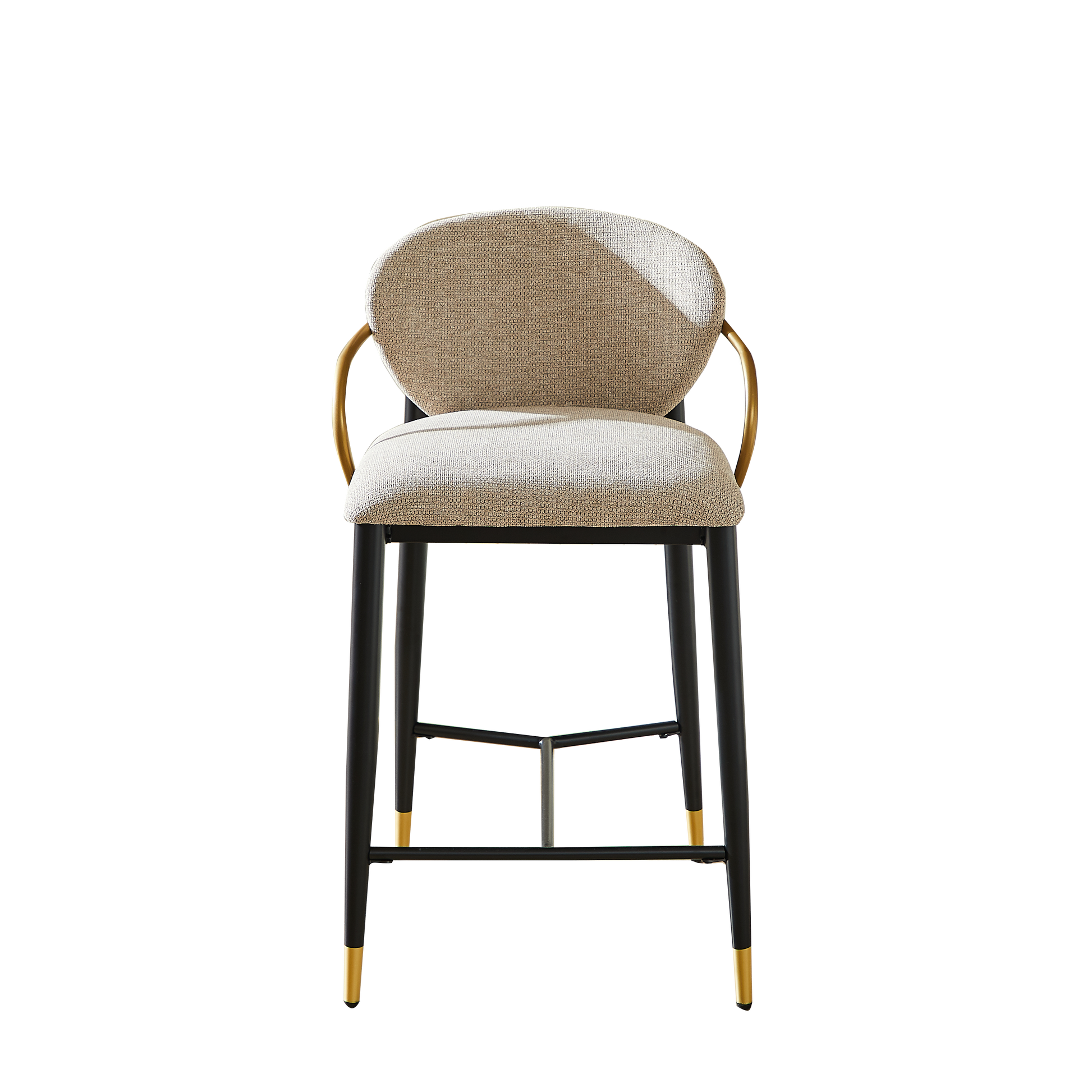 Set of 2 Bar Stools Adjustable Height Backrest Footrest - Chenille Light Brown/Black Gold
