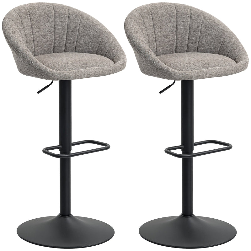 Set of Two Relaxed Tub Bar Stools Adjustable Swivel Height Grey Polyester