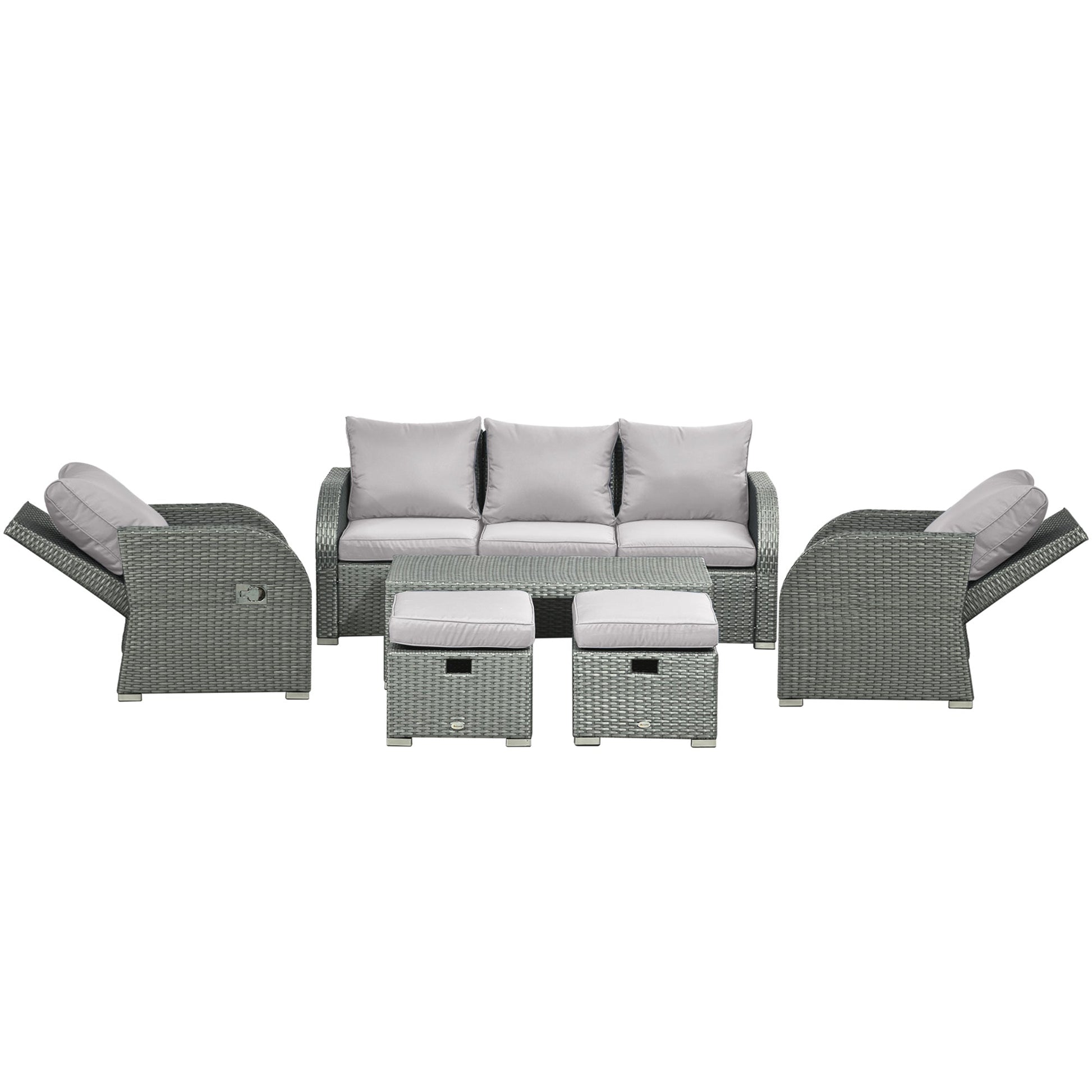 Six-piece Outdoor Rattan Dining Sofa Set with Reclining Armchairs, Grey