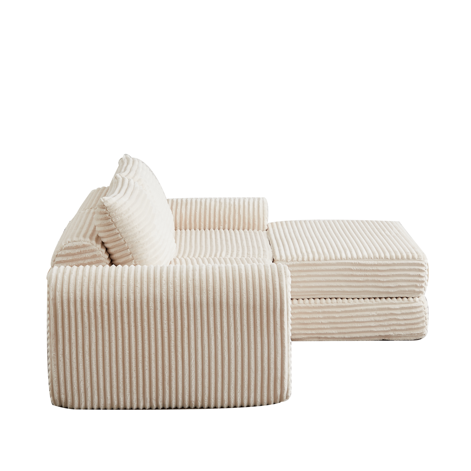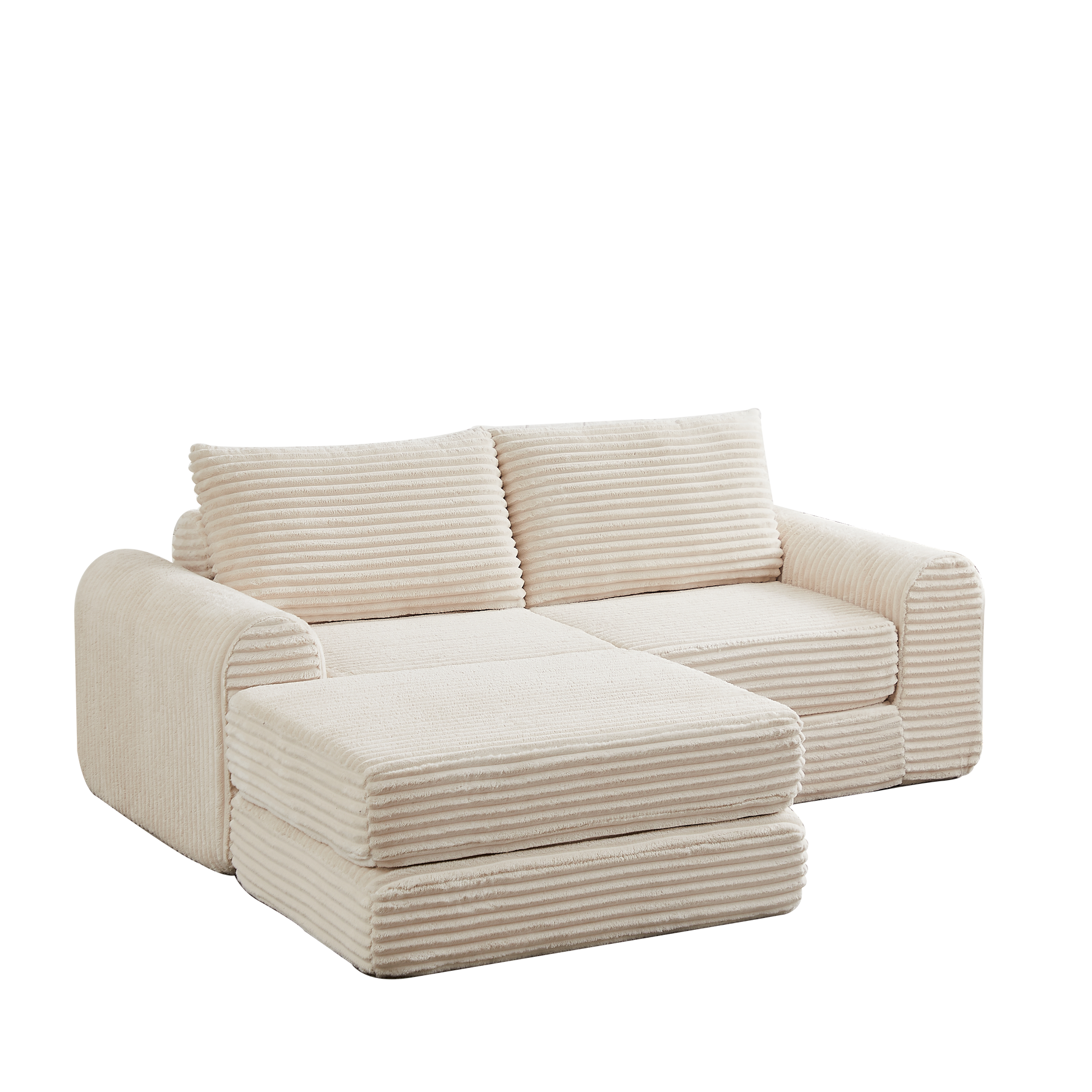 Sofa Bed 2-in-1 Modular, Removable Footstool, Curved Armrests - Corduroy