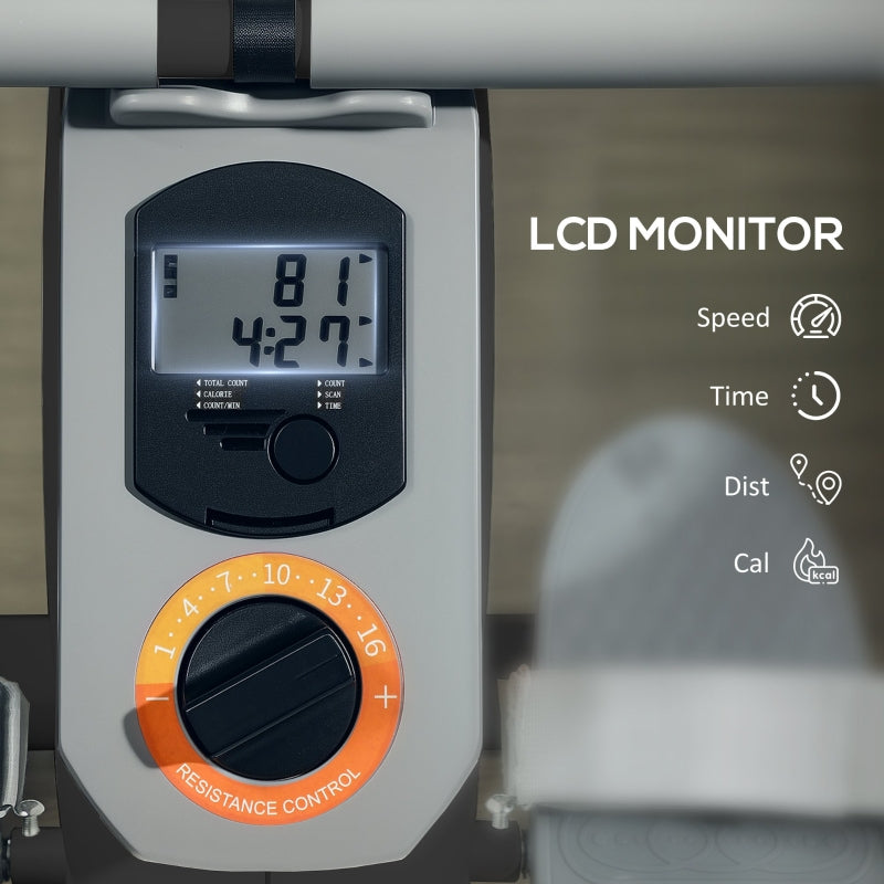 SPORTNOW Rowing Machine - 16-Level Magnetic, LCD Monitor, Phone Holder, Black