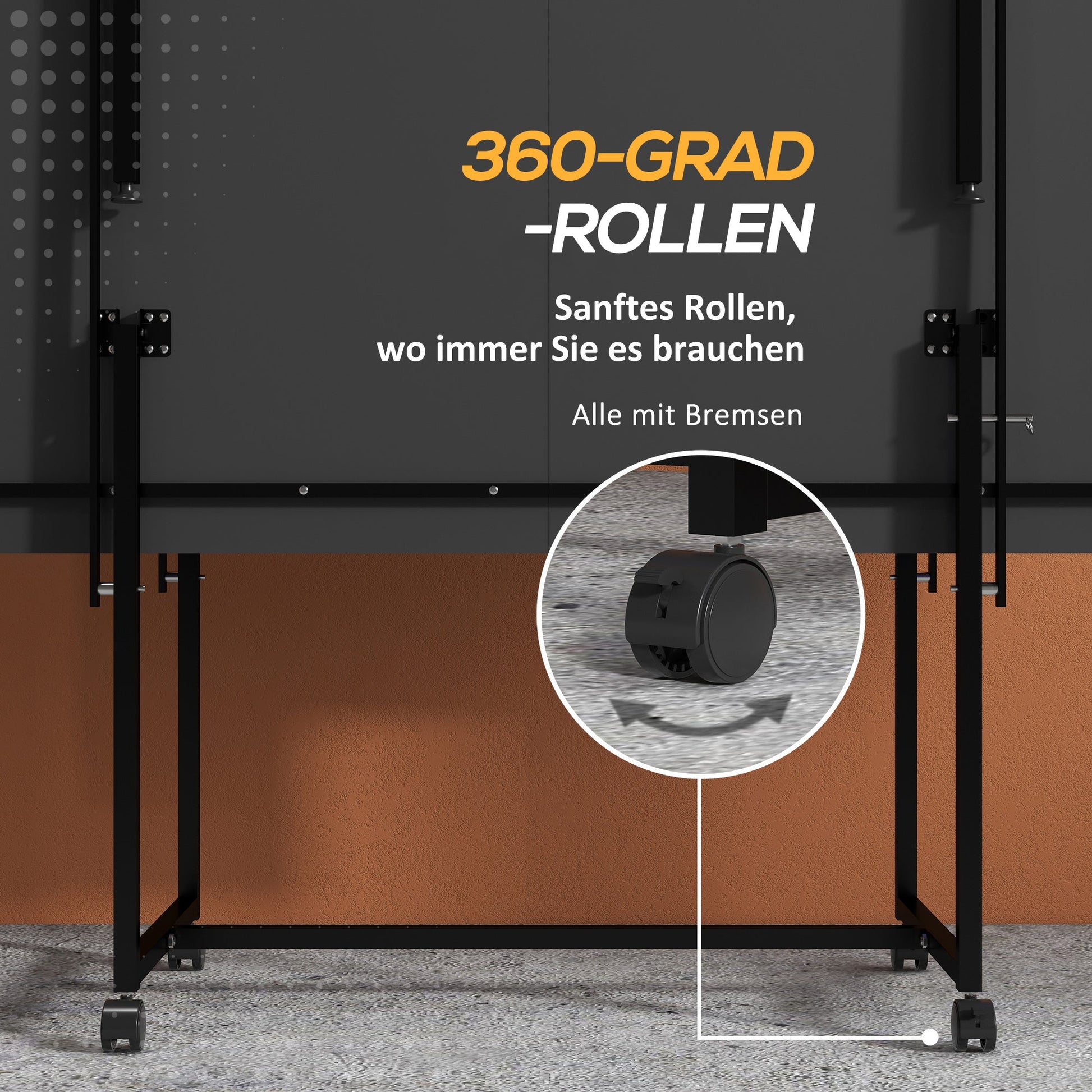 Compact and portable: The table tennis table can be folded up to save space when needed and features four wheels with brakes, making it easy to move anywhere. Safety locks on the frame ensure it stays folded, so the legs don't get in the way during transport.