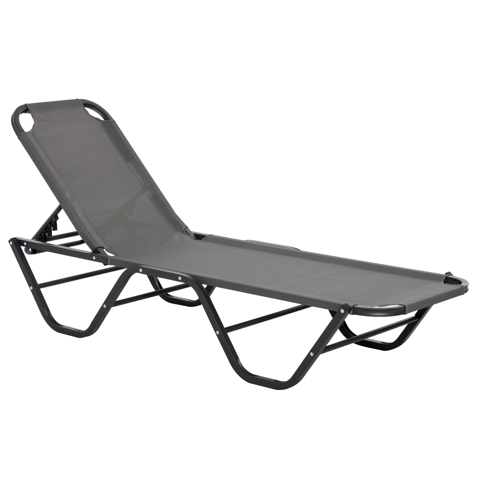 Sun Lounger Relaxed Recliner 5-Position Adjustable Backrest Aluminium Frame, Grey