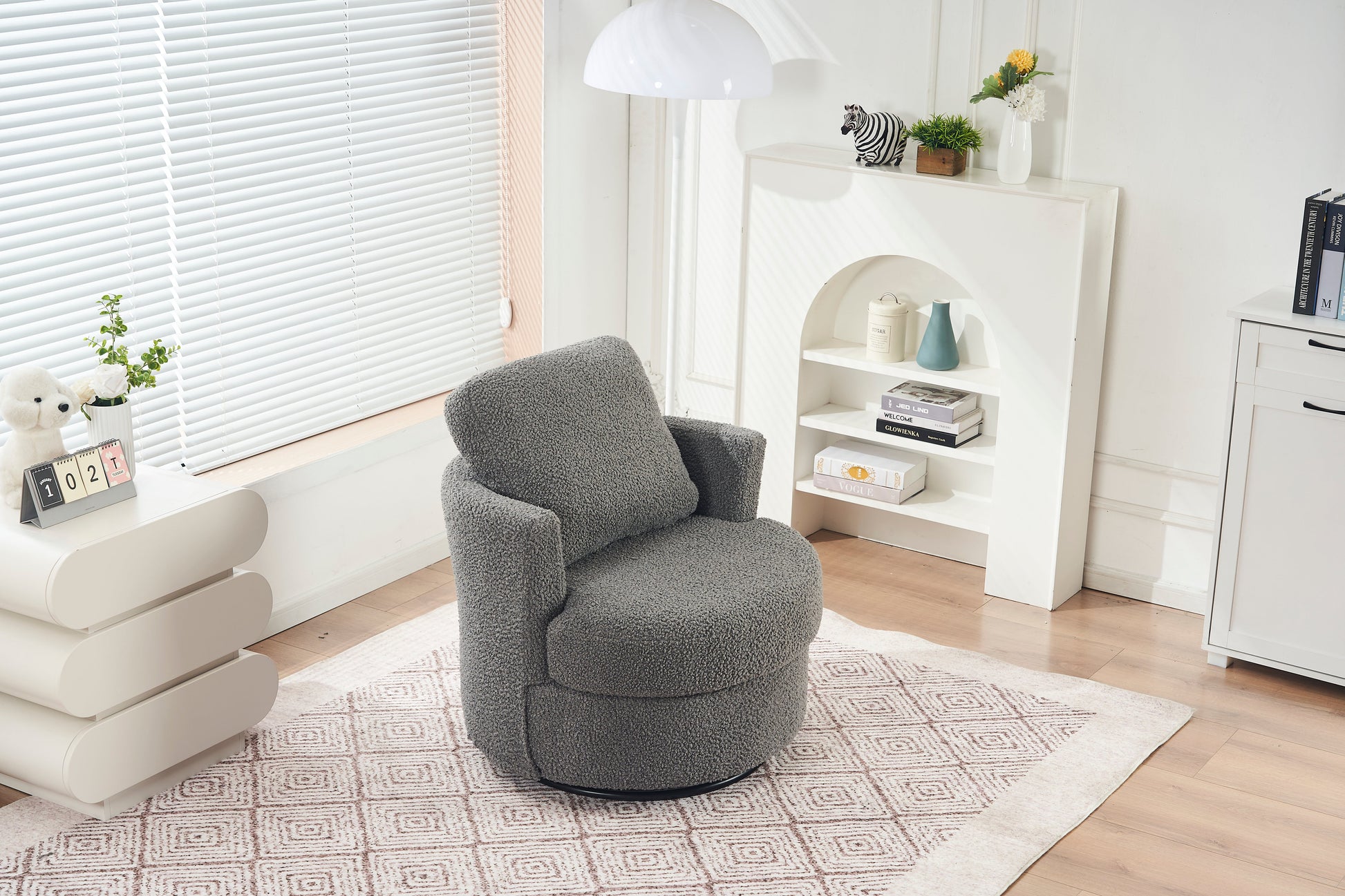 Teddy Swivel Armchair: Back Cushion Pillow, Thick Foam Pad, Medium Grey