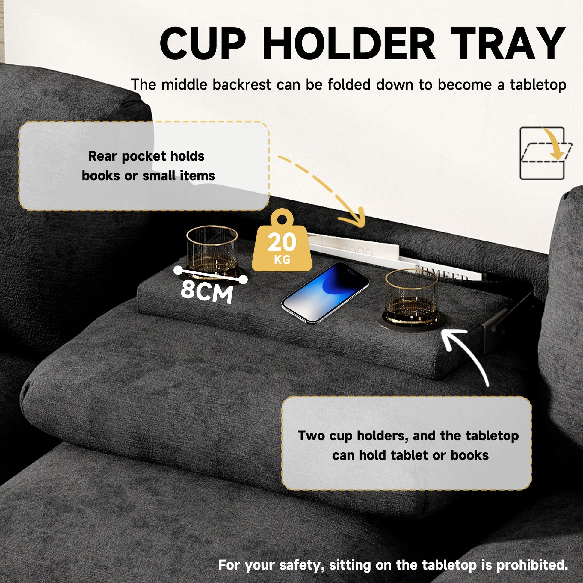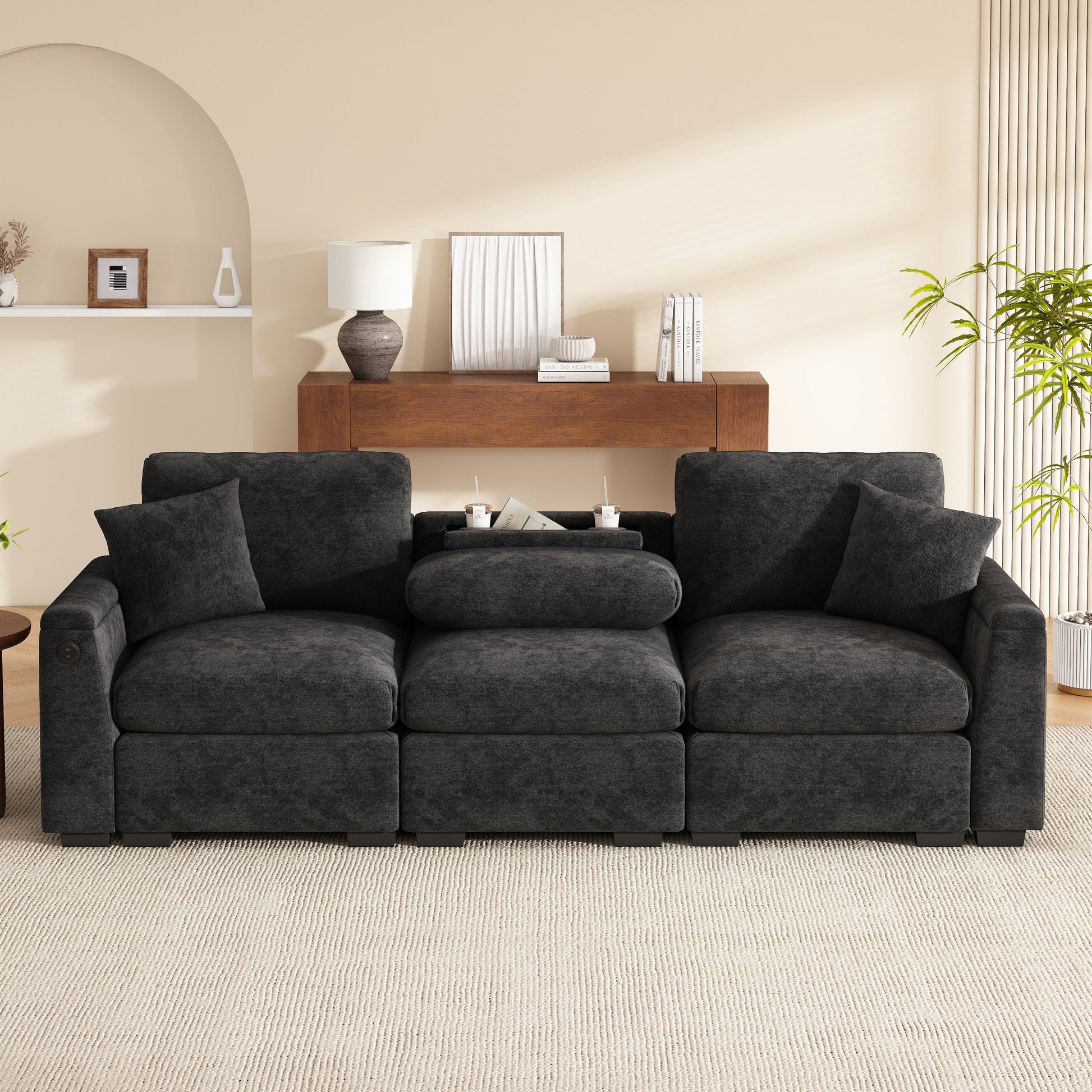 Three-Seater Sofa Multifunctional Folding Table USB Storage - Chenille