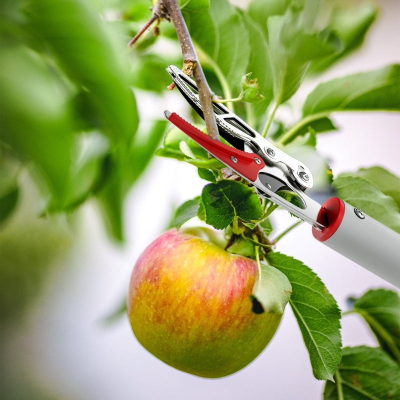 Reach great heights and prune easily with these high-reach pruning shears. With a fixed length of 180 cm, they allow you to trim tall branches or pick fruit without a ladder, completing overhead work effortlessly and safely from the ground.