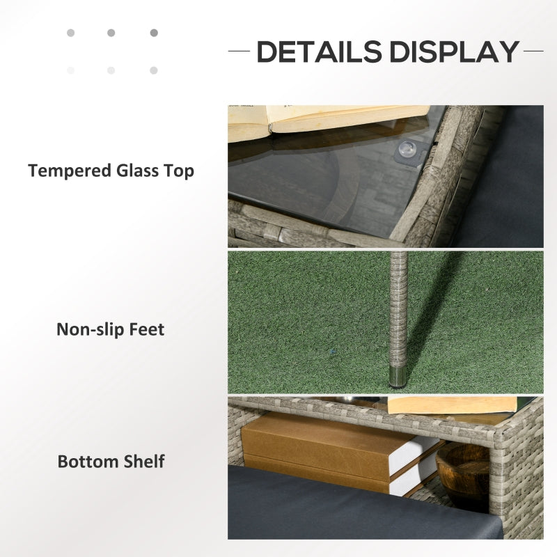 Two-Seat Chair with Middle Table Rattan Light Grey