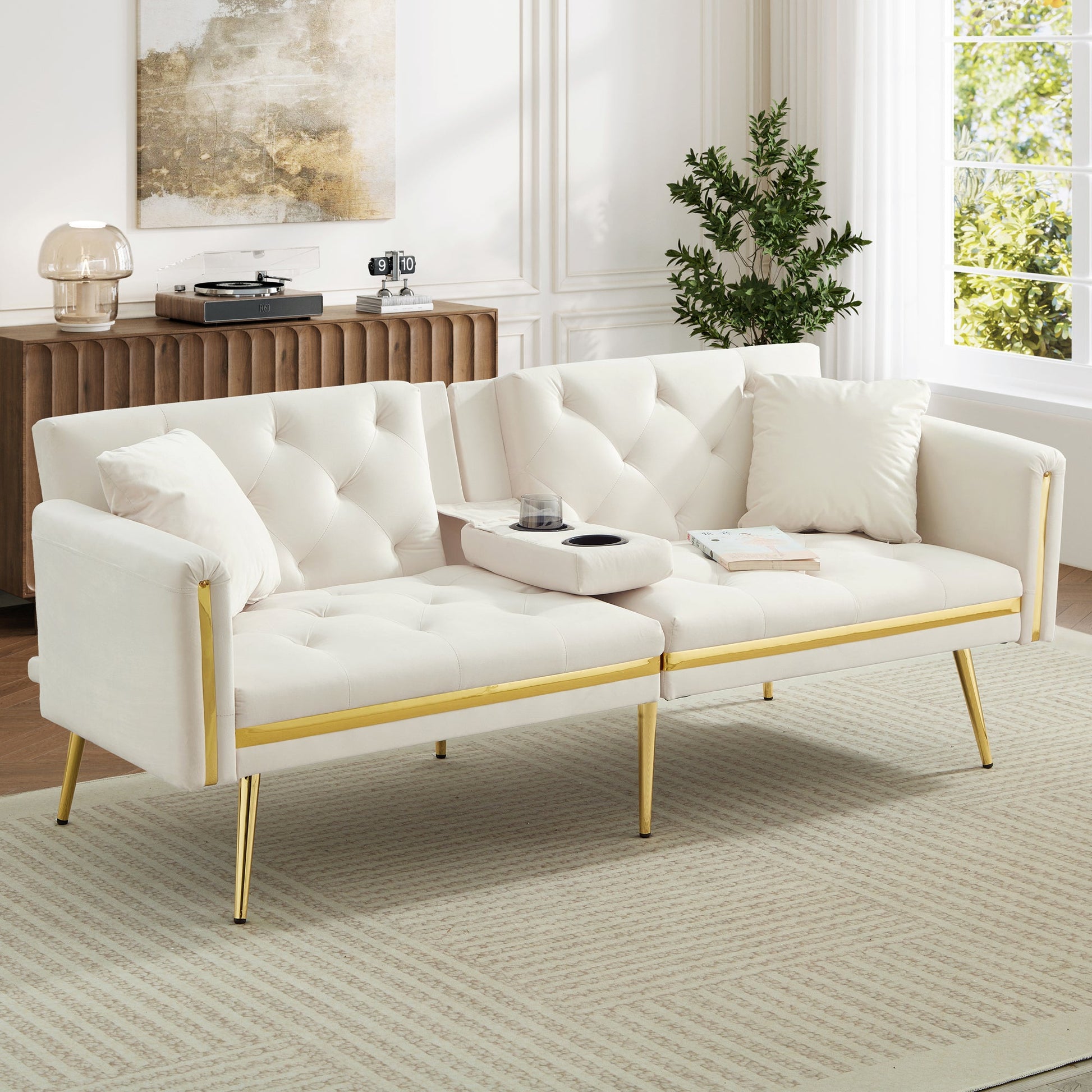 Golden metal legs and elegant trim details bring a sophisticated, modern look to the sofa, making it not just functional but also a statement piece in your living room or bedroom. These eye-catching features add a luxurious flair to your décor while guaranteeing stability.