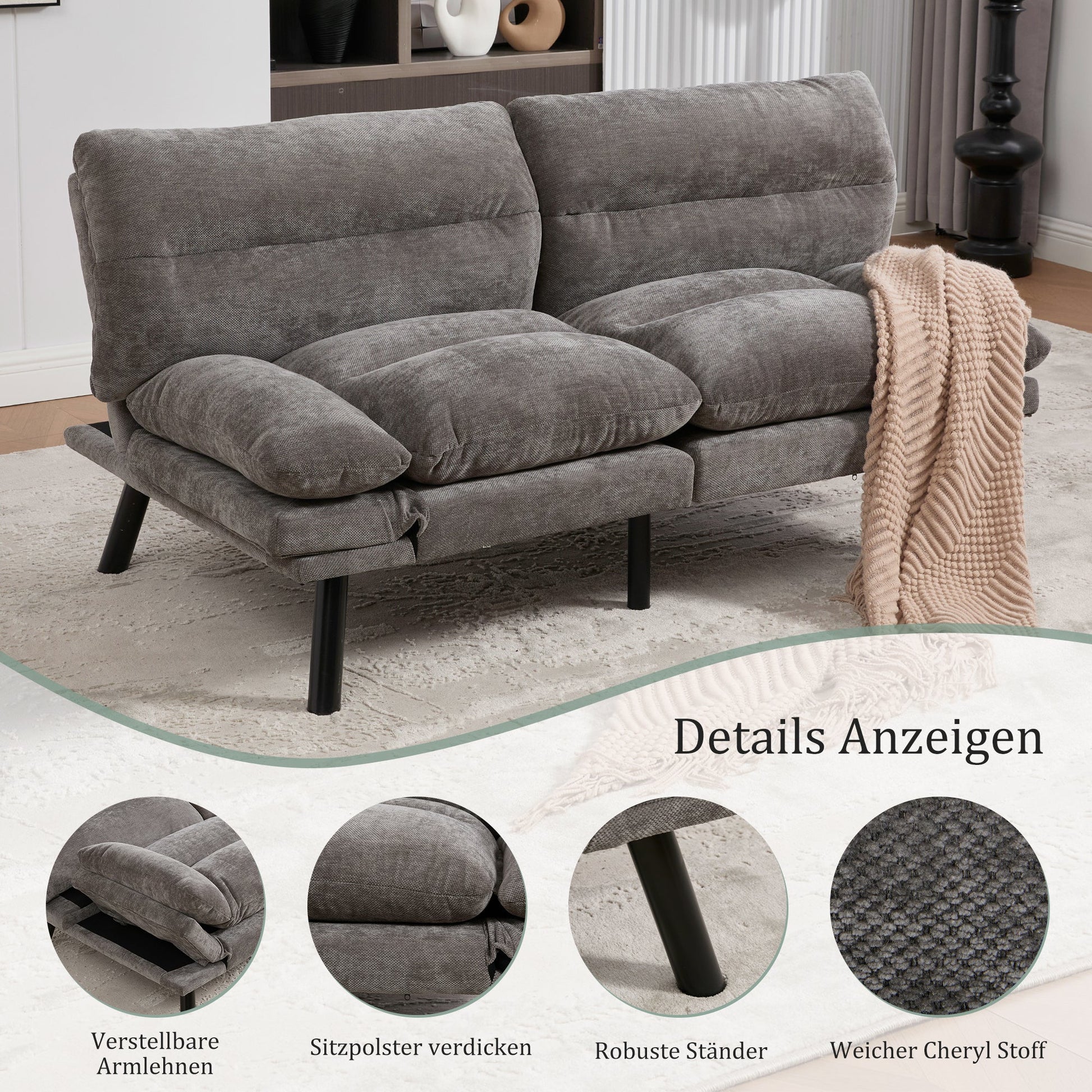 Multiple adjustable backrest angles meet all comfort requirements. High-quality chenille fabric is durable, and non-slip metal feet ensure safety. This sofa is your perfect companion for many years to come.