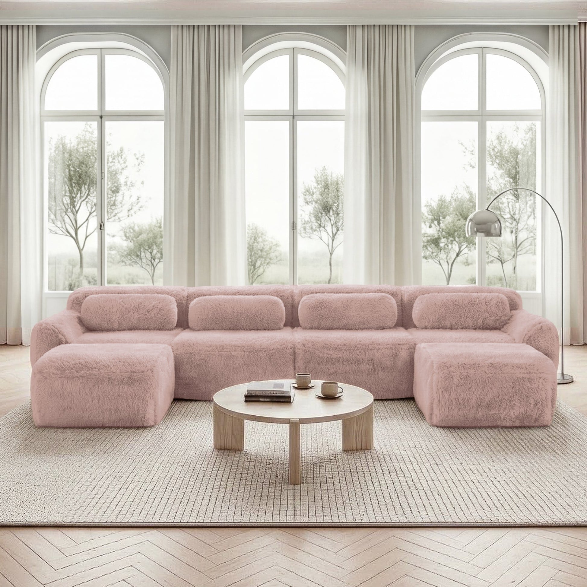 U-Shaped Modular Sofa No Assembly Plush Fabric - Pink