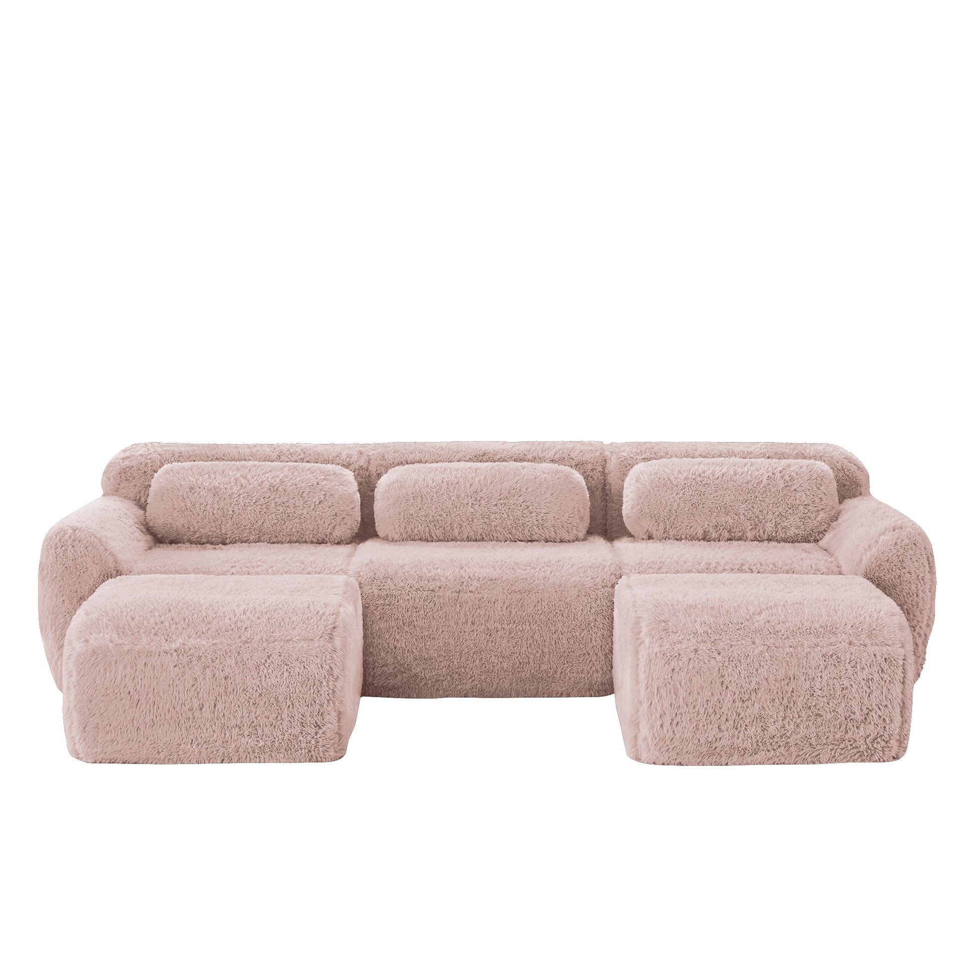 U-Shaped Modular Sofa Plush No Assembly High-Resilience Foam - Pink