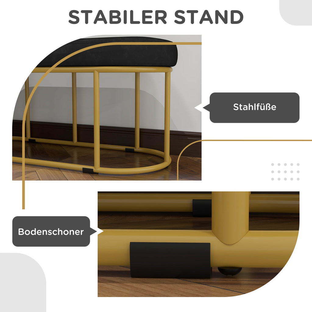 Upholstered Bench, Velvet Look, 200kg, Steel, Black