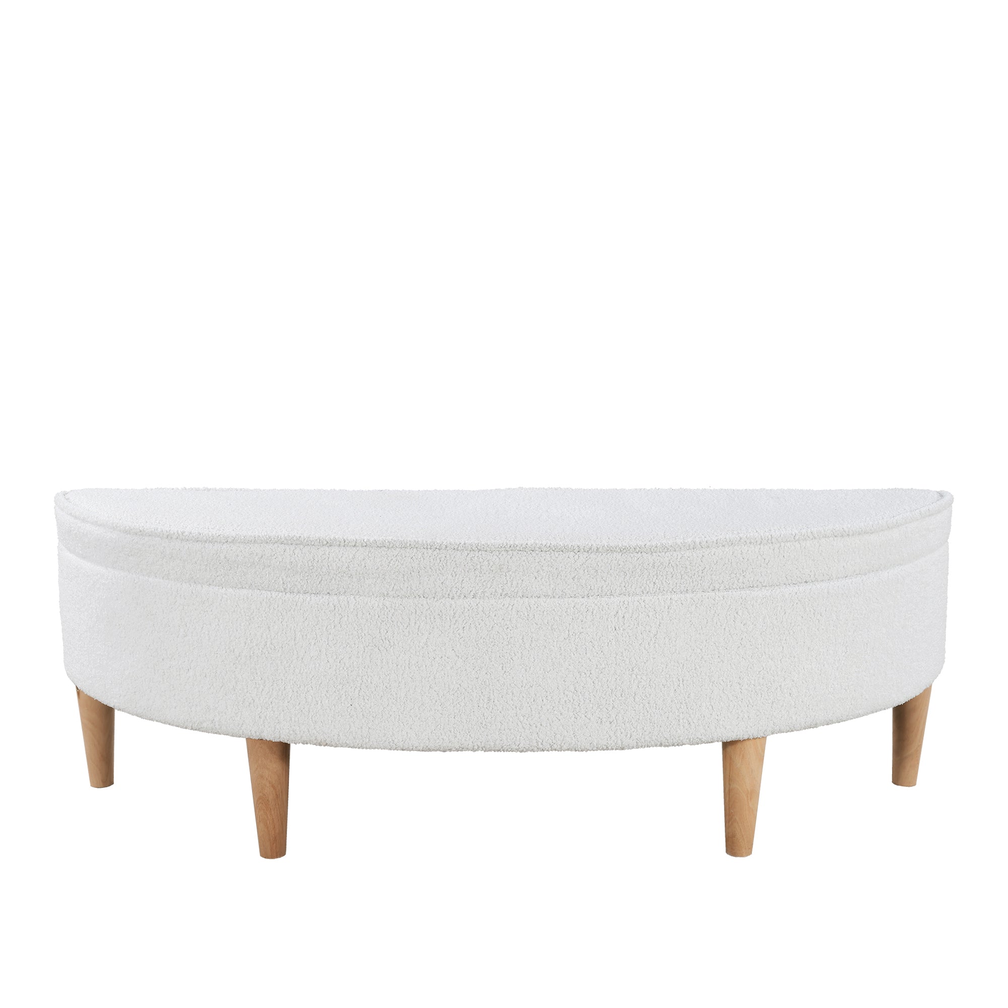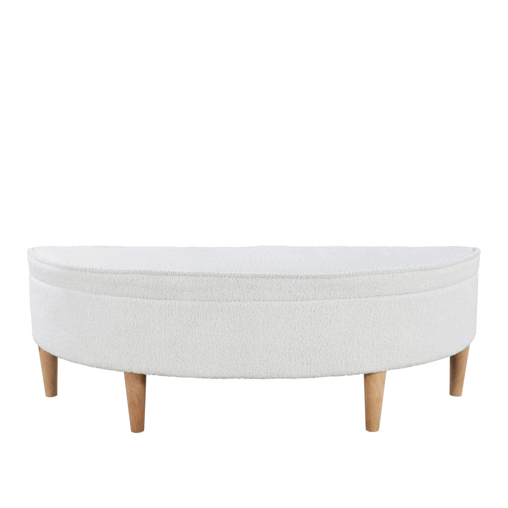 Upholstered Bench with Storage, Semicircular, Wood Leg, White