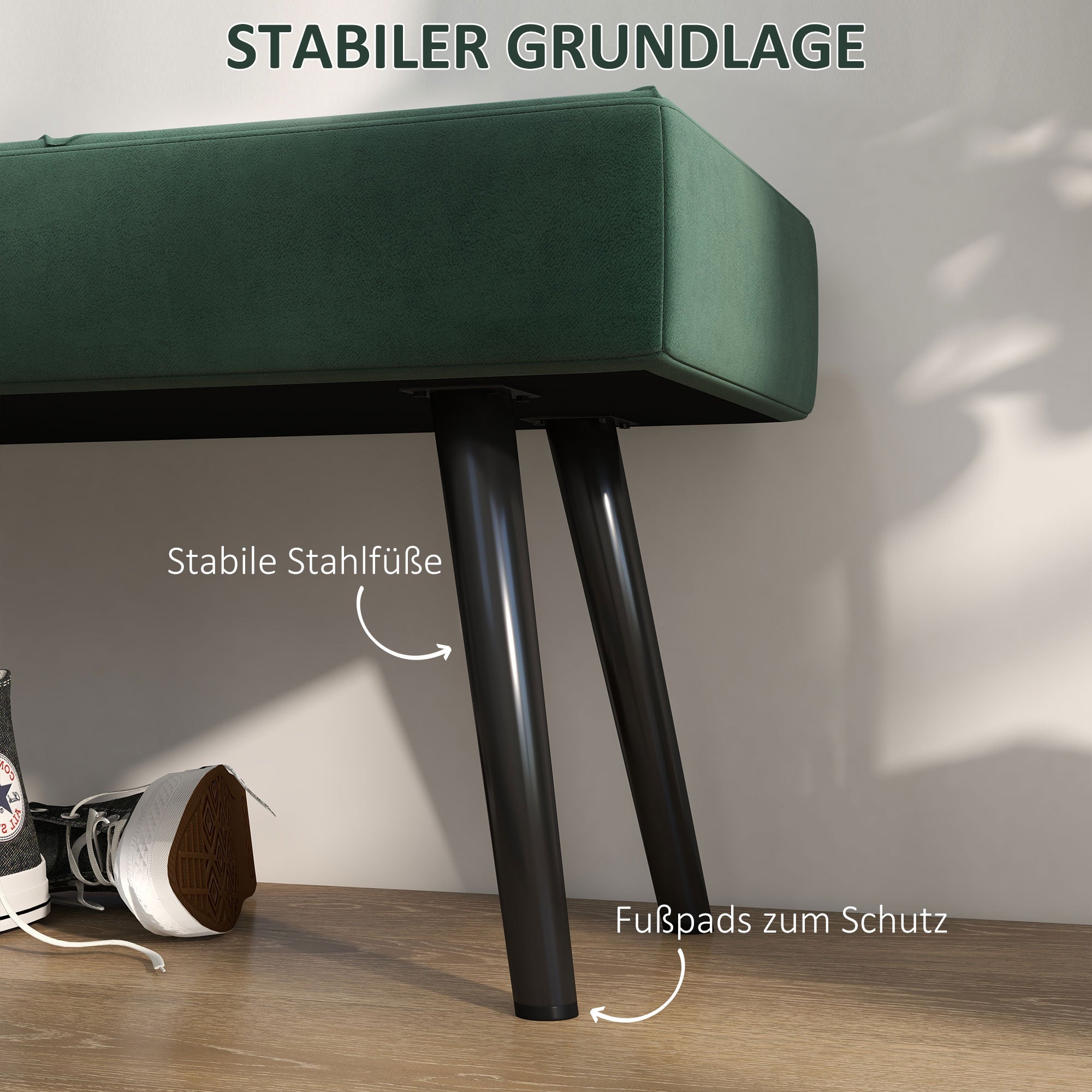 Upholstered Bench X-Pattern Seat, Bed, Hallway, Velvet Look, Green