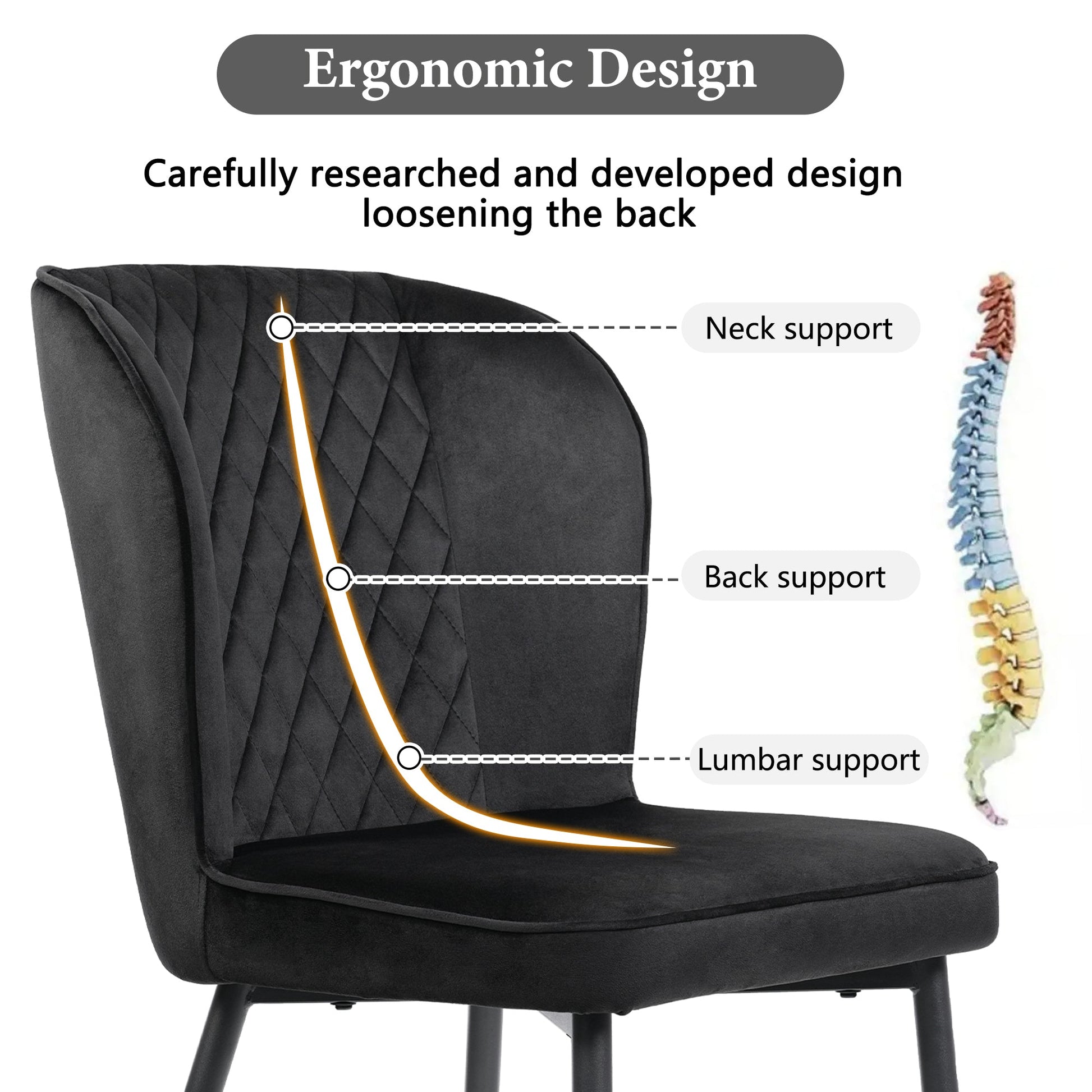 Dine-in Luxurious Style with Velvet Dining Chairs. Simple and tasteful, these dining chairs deliver glamour accents to your space. Featuring a sleek-lined silhouette and button-tufted accents on the back, they bring a touch of modernity to your dining room and a unique character to your kitchen. The distinctive metallic legs of these chairs not only add stability but also infuse a modern vibe. Their sleek design adds a sense of fashion and provides outstanding support and durability. These Velvet Dining Chairs offer spacious seating and a supportive backrest, ensuring unparalleled comfort. Whether used for extended dining sessions or unwinding in style, these chairs have you covered.